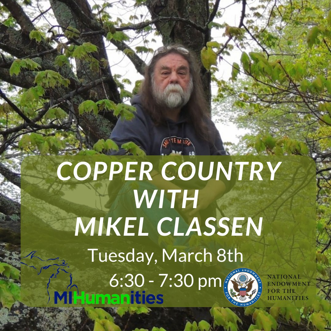 Hello all, Apologies for cross posting. The White Lake Township Library will be hosting author Mikel Classen from the U.P. on *March 8th at 6:30 pm* for an *In Person* program. This program is being hosted as part of our Great Michigan Read themed events and is funded in part by Michigan Humanities, an affiliate of the National Endowment of the Humanities. Presented with Highland Township Public Library. Mikel Classen has been writing and photographing northern Michigan in newspapers and magazines for over thirty-five years, creating feature articles about the life and culture of Michigan’s north country. At this program he will be talking about the Copper Country and the mining life and culture that thrived in the area. We would like to invite you and your patrons to attend this event! Registration can be found here: https://whitelakelibrary.evanced.info/signup/EventDetails?EventId=5151&ag=&et=&df=calendar&cn=0&private=0&ln=0&backTo=Calendar&startDate=2022/03/01 Please let me know if you have any questions! -- EmmaLee Herlocher Programming Librarian White Lake Township Library 11005 Elizabeth Lake Road White Lake MI 48386 248-698-4942 whitelakelibrary.org