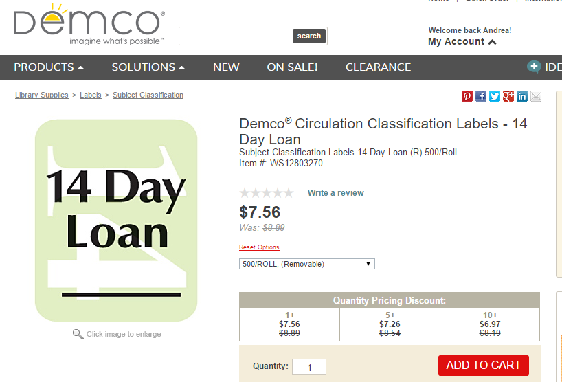 Hi All- Does anyone use 14 day Loan stickers? I have 7 boxes of 500/roll to sell. I would like to sell all 7 boxes for $25. Half their normal price. (See attached picture) Demco will not let me return them because we have had them more than 6 months, even though they still sell them on their website. I will also send you any remaining partial boxes we find for free. We are no longer going to be using them after December. Thanks for considering, Andrea Andrea Estelle, MLIS Library Director Otsego District Library Brighten the Corner Where You Are Every Great Community Deserves a Great Library <http://www.otsegolibrary.org/> www.otsegolibrary.org