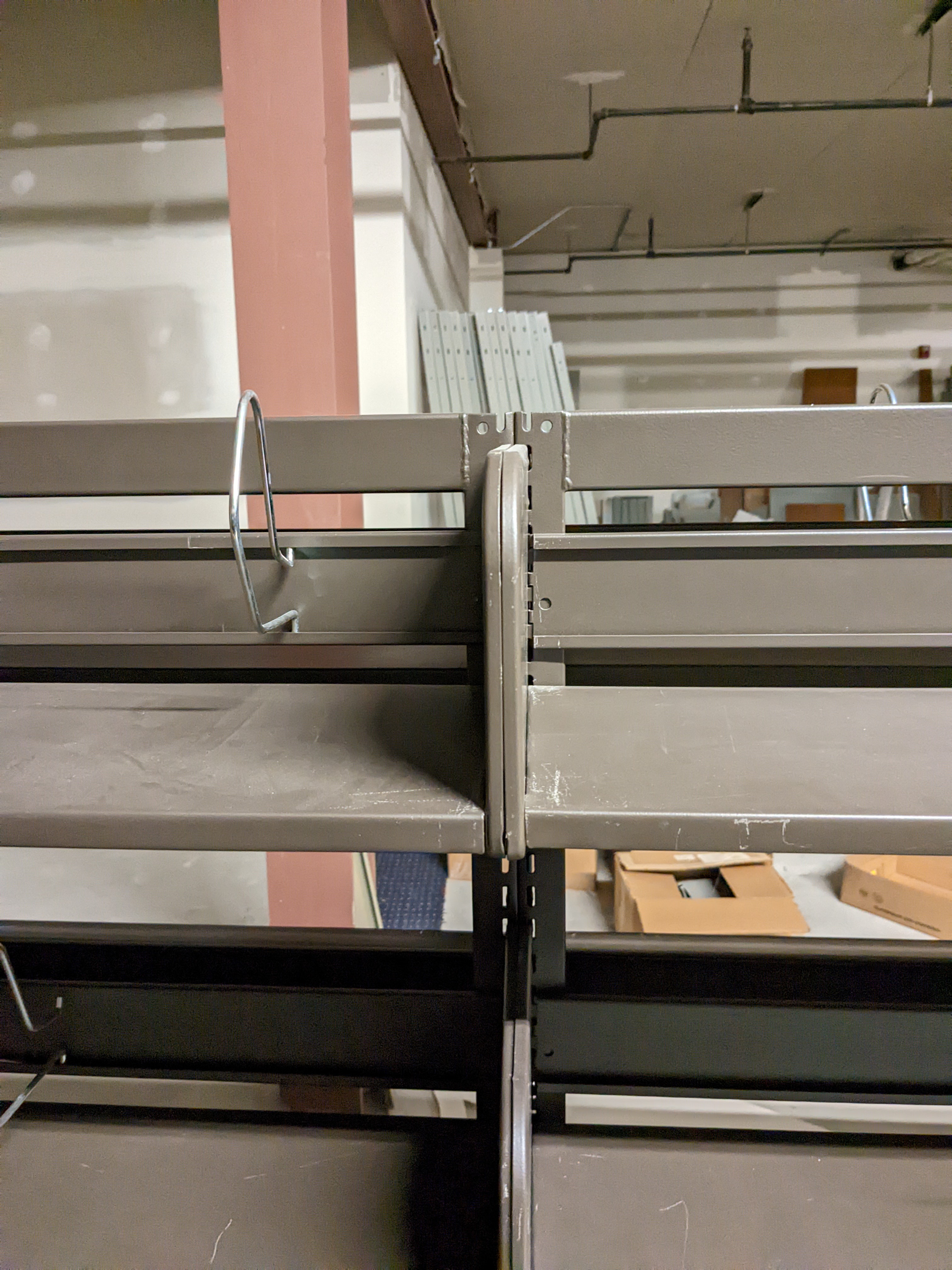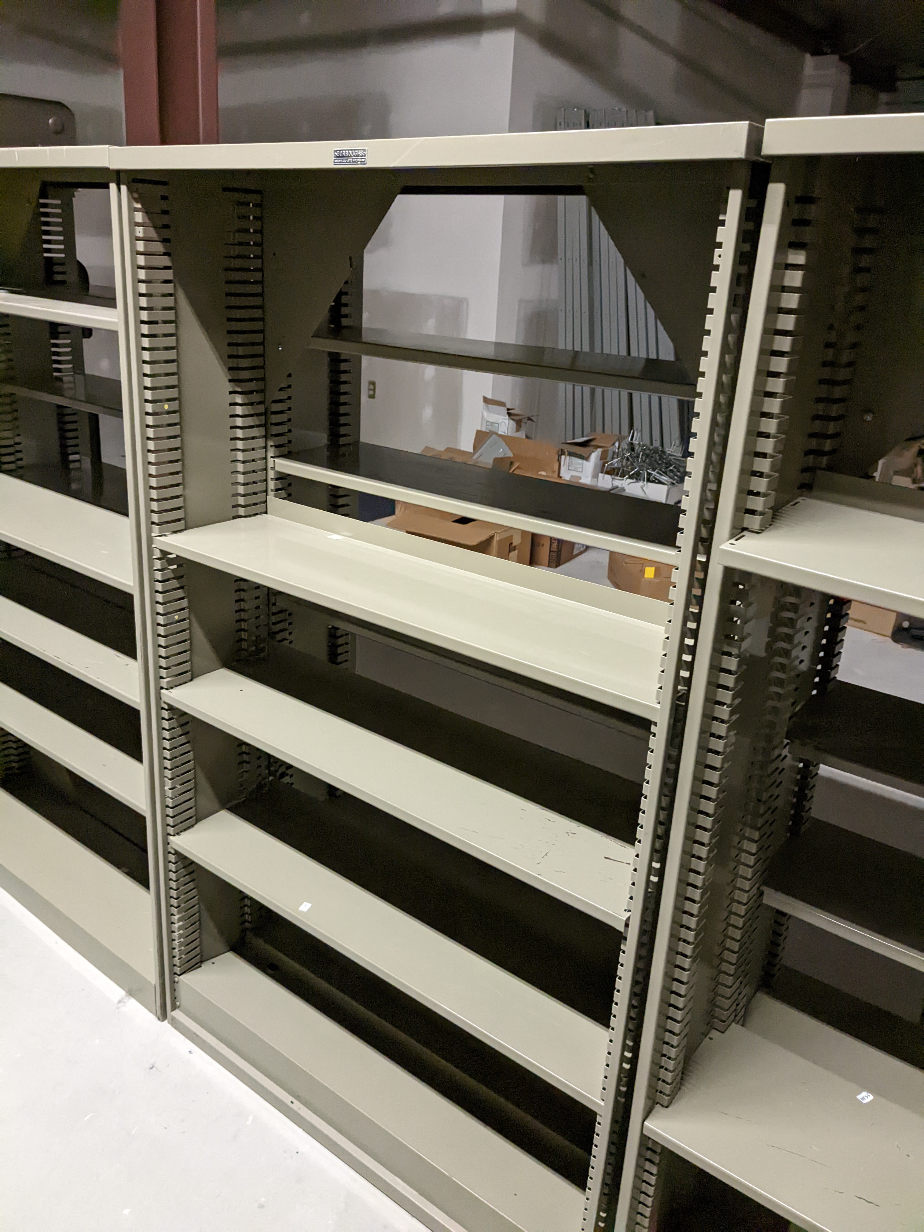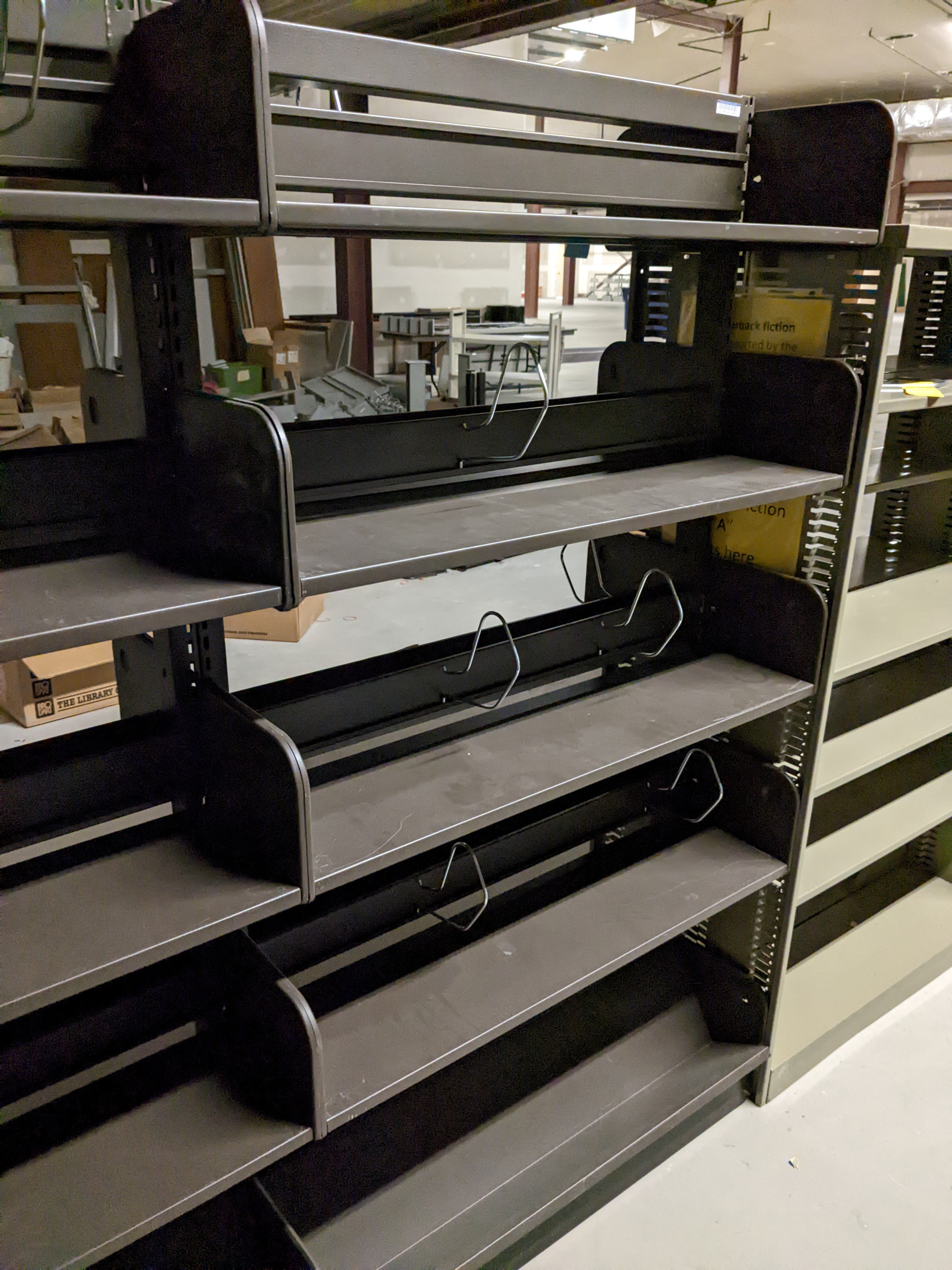 If anyone is looking for shelving at a deep discount, RTDL is selling 18 of the dark brown 6 ft tall steel shelves. They are double sided and can be attached side by side to each other. We also have some grey shelving with slide in shelves. There are 8 of these 5 ft tall shelves available. All best offers accepted!