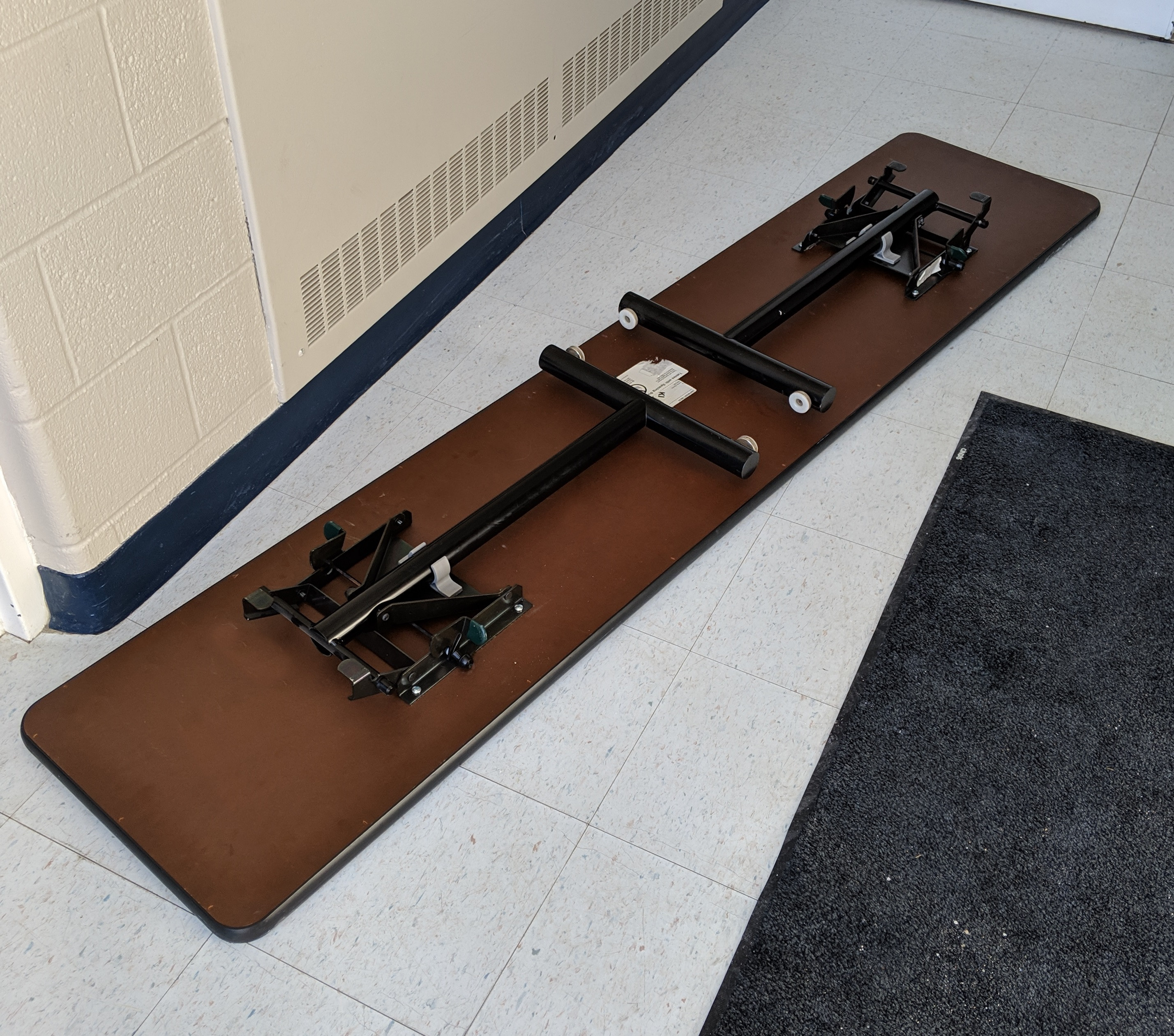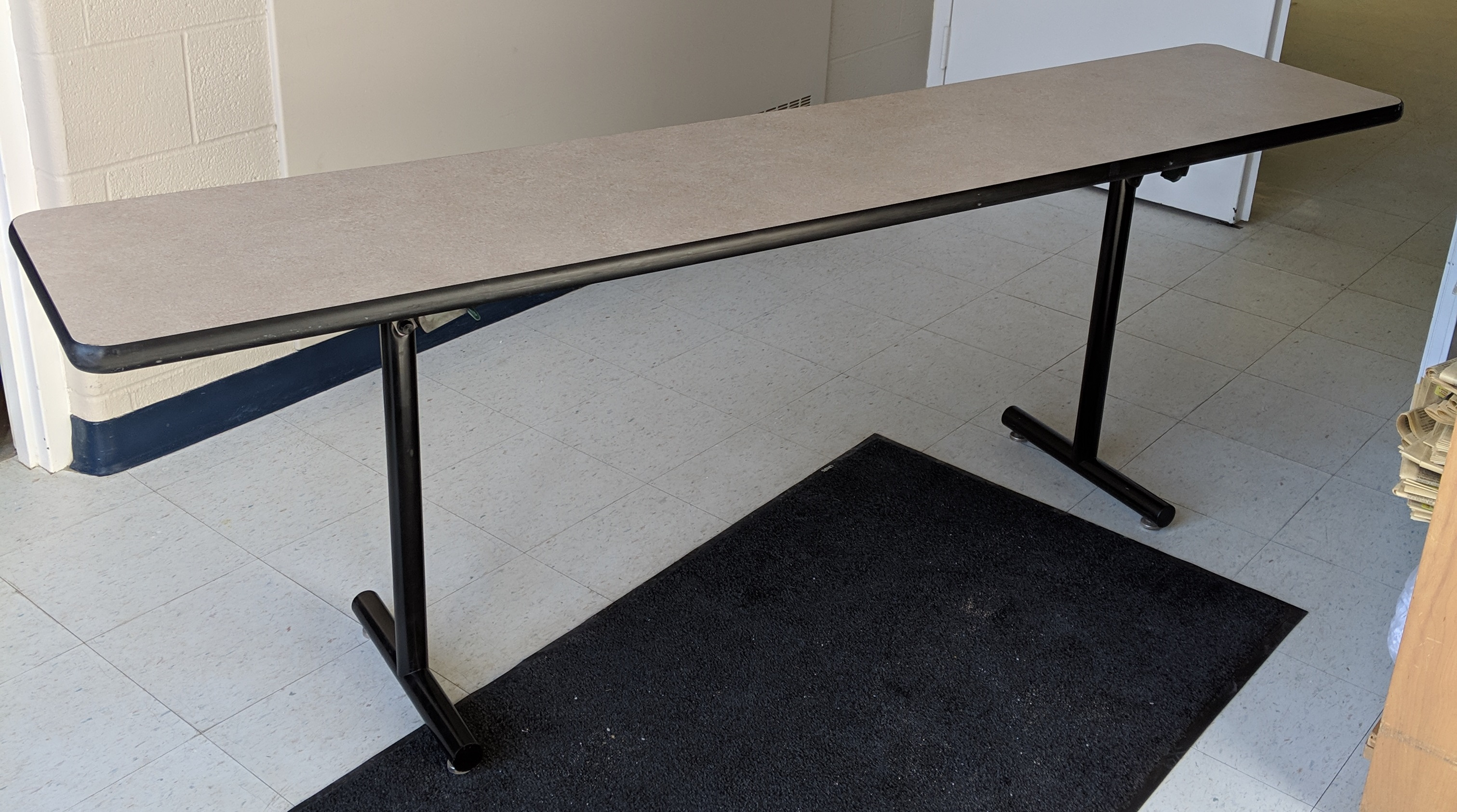 The Houghton Lake Public Library has 12 tables with foldable legs available in exchange for reasonable donation. Asking $900. Tables were originally $100 each new. Photos are attached. Tables are 29" tall (when standing, 4 1/2" when folded), 18" wide, and 83 3/4" long. Table tops are in good condition. Some minor wear and tear on the plastic bumpers. Please reply off list with offers and questions. Thanks! -- Brandon Richards Technology Coordinator/Trainer Houghton Lake Public Library 4431 W Houghton Lake Dr Houghton Lake, MI 48629 989.366.9230
