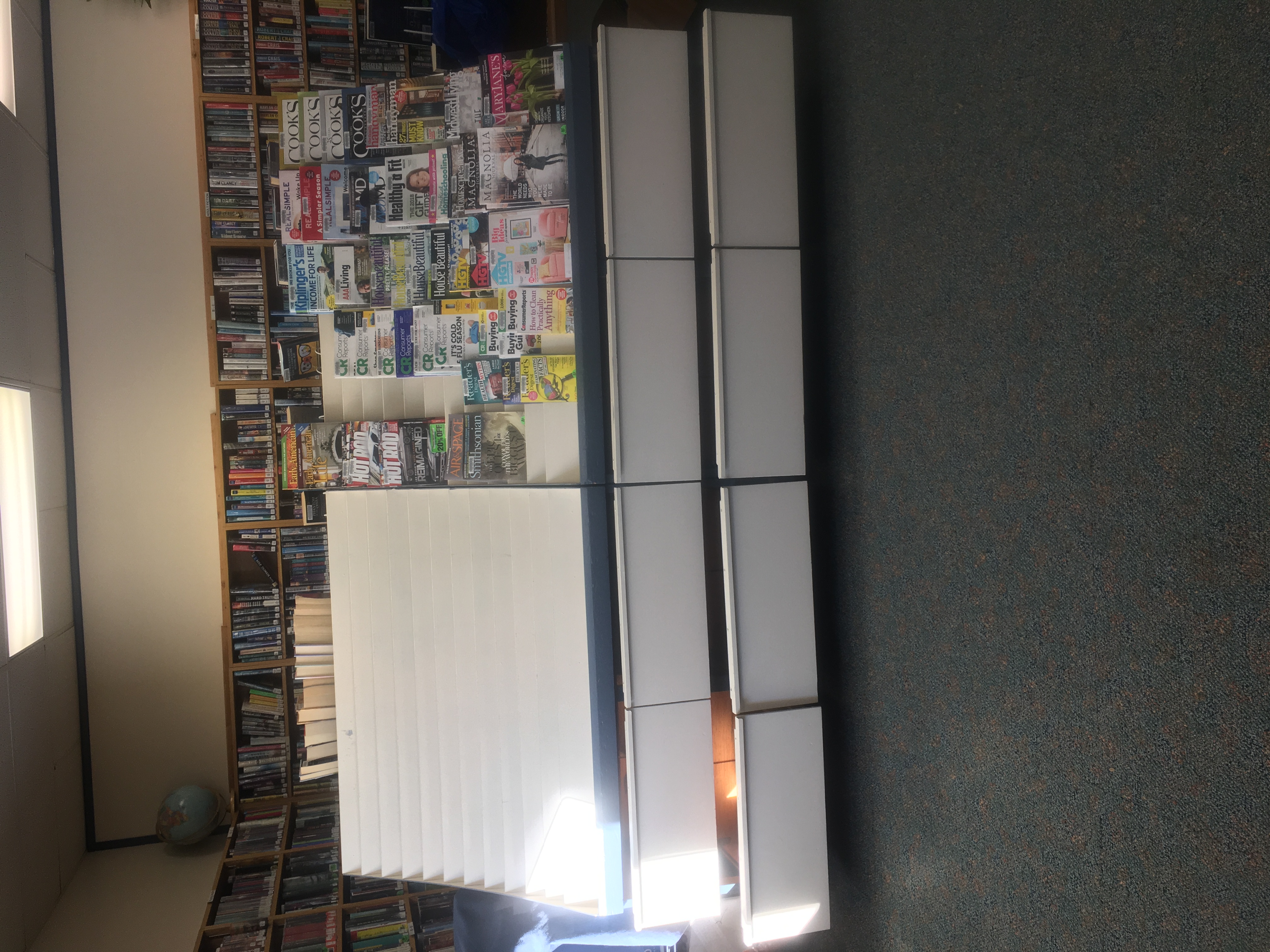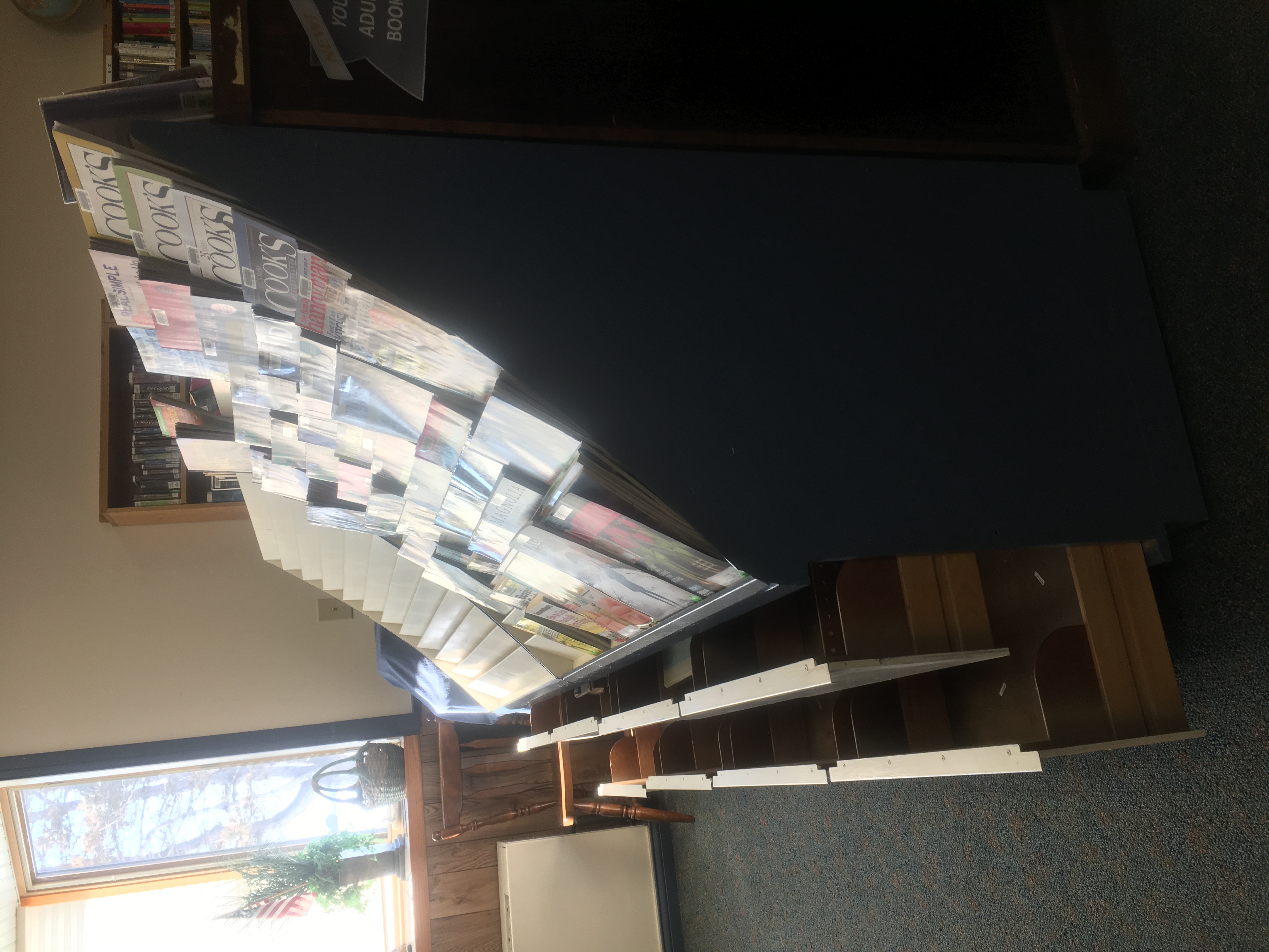We have 2 units for magazines and each unit has 4 storage drawers. They can go against a wall or solid surface(back of a bookcase) or they can stand freely back to back. The dimensions of each unit is: 55" H 23.5" D 48" W We would like to give these away as soon as possible. Thanks, Tammy Borden Cell# 616-350-3956 Library# 616-765-5181
