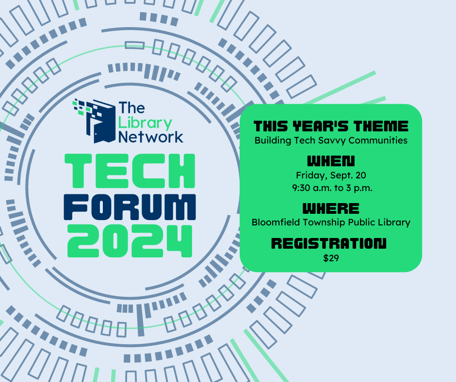 Hello all! Just a reminder that TLN's Annual Technology Forum is fast approaching. This years theme is Building Tech Savvy Communities. The goal of this event is to connect and support libraries with their technology needs. Little or no technology background? No worries! This event is available to tech novices, experts and those in between! Register here: [ https://tln.org/events/EventDetails.aspx?id=1882696&group= | https://tln.org/events/EventDetails.aspx?id=1882696&group= ] The registration deadline is Monday , September 16th . [ https://tln.org/events/EventDetails.aspx?id=1882696&group= ] Thank you, Jordan Kalie -- Jordan Kalie Administrative Assistant The Library Network jkalie@tln.org