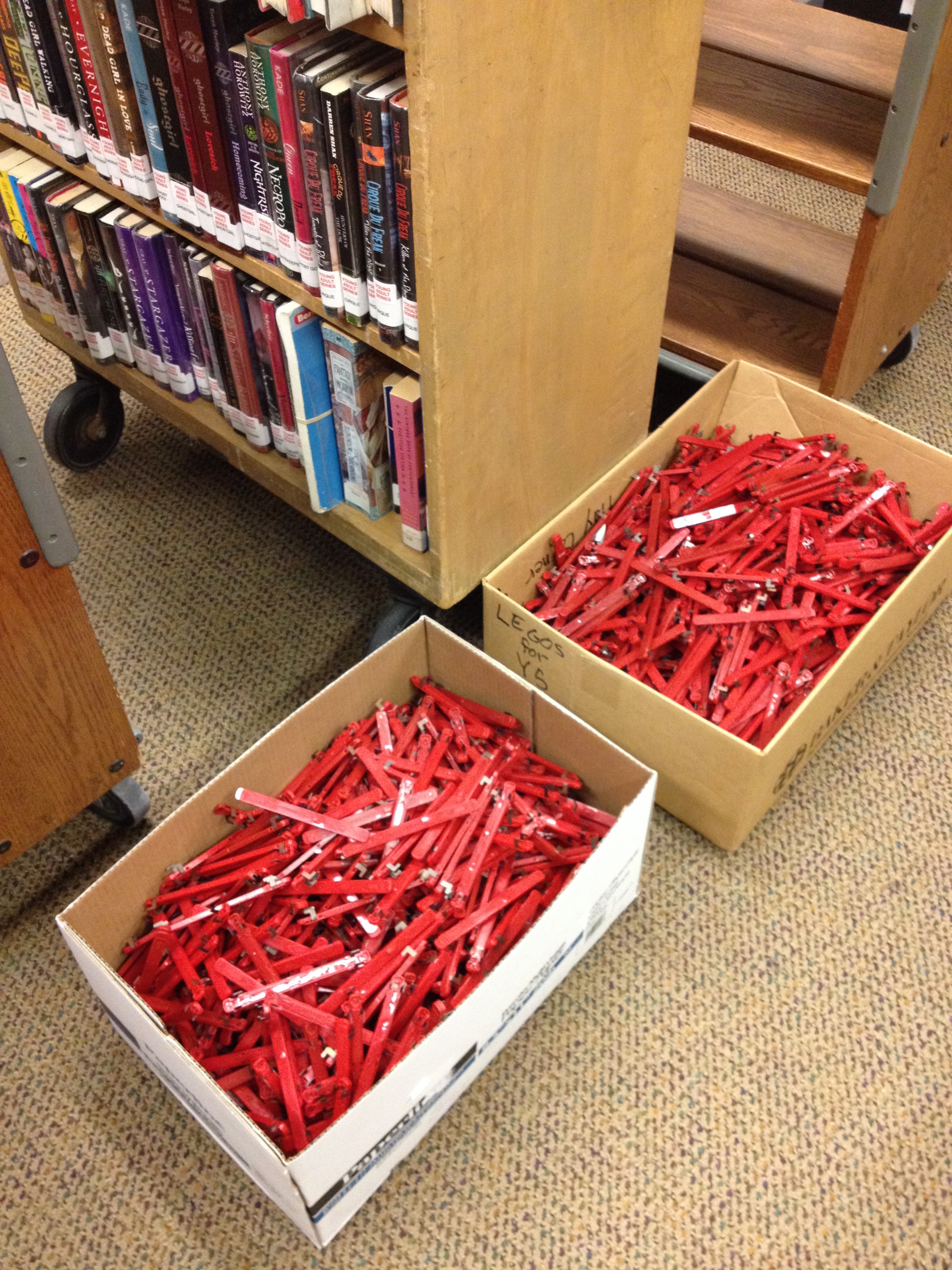 The Baldwin Public Library (Birmingham, MI) has a few hundred Amaray DVD Case Locking Clips that we are no longer using. If your library is interested in them and can pick them up, they'll go to the first interested library that responds. You can find the product information here<http://www.vernonlibrarysupplies.com/amaray-dvd-case-locking-clip.html>. Attached is a picture of the number of clips that we have to give away (two boxes). Please respond off-list. - Kathryn -------------------------- Kathryn Bergeron, MSI Associate Director Baldwin Public Library 300 West Merrill Street Birmingham, MI 48009 248-647-1700 http://www.baldwinlib.org
