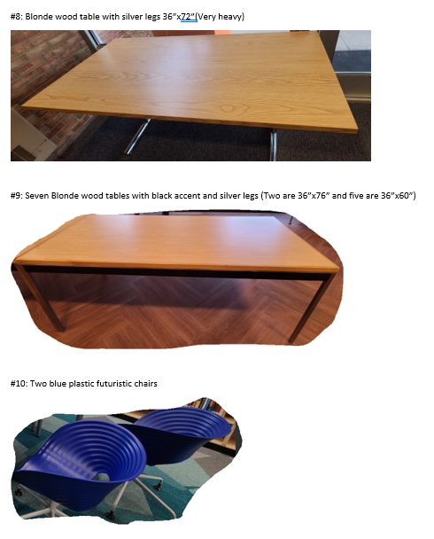 Thanks to everyone for quick responses! Here is what I have left: [cid:6ac35fb6-e39c-47f4-895c-02b0030a0e3e] [cid:64640d66-7edb-4f25-aef3-fa70a413ab0d] [cid:4397a123-7ded-42cc-abd0-81003f327495] [cid:de7ffc47-0195-4535-b468-0b78ab30f9ba] My email address has changed to adrienne.breznau@romi.gov<mailto:adrienne.breznau@romi.gov>. Please update your contact information. Sincerely, Adrienne Breznau she/her/hers Head of Access Services Royal Oak Public Library 222 E. Eleven Mile Road<https://maps.google.com/?q=222+E.+Eleven+Mile+Road+Royal+Oak,+MI+48067&entry=gmail&source=g> Royal Oak, MI 48067<https://maps.google.com/?q=222+E.+Eleven+Mile+Road+Royal+Oak,+MI+48067&entry=gmail&source=g> Tel: 248-246-3714 [https://ci3.googleusercontent.com/mail-sig/AIorK4zJ-yrCdmn808Ce-NRojXYi5rha4...] ________________________________ From: Breznau, Adrienne Sent: Tuesday, September 6, 2022 11:43 AM To: michlib-l@mail.mcls.org <michlib-l@mail.mcls.org> Subject: Ten items of free furniture from Royal Oak Public Library Hello! Royal Oak Public Library has the following free furniture items to give away. The only caveat is you must bring enough of your own tools and assistants to haul it away because we are unable to help move any of it. 🙂 Let me know what you want: adrienne.breznau@romi.gov or 248-246-3714. Thanks! [cid:1f6fc025-229f-419e-bbf6-397f5b6a3997] [cid:c4b6bc72-4489-47c5-b792-154f769075a2] [cid:6858e03e-76fa-4065-8541-e399cd9f4da6] [cid:7923553f-b875-4a89-8f47-8a2ea2abee27] Anything not claimed by 9 am on Friday, September 9 will be given away via other means. My email address has changed to adrienne.breznau@romi.gov<mailto:adrienne.breznau@romi.gov>. Please update your contact information. Sincerely, Adrienne Breznau she/her/hers Head of Access Services Royal Oak Public Library 222 E. Eleven Mile Road<https://maps.google.com/?q=222+E.+Eleven+Mile+Road+Royal+Oak,+MI+48067&entry=gmail&source=g> Royal Oak, MI 48067<https://maps.google.com/?q=222+E.+Eleven+Mile+Road+Royal+Oak,+MI+48067&entry=gmail&source=g> Tel: 248-246-3714 [https://ci3.googleusercontent.com/mail-sig/AIorK4zJ-yrCdmn808Ce-NRojXYi5rha4...]