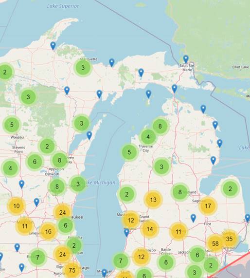 Storing them *safely* for the next Solar Eclipse in the USA (August 23, 2044) or regular recycling (with the eye protective film removed) are also options. Feel free to share if you know of another good cause libraries can send returned solar eclipse glasses to… Lastly, a big shout out to StarNet’s S.E.A.L. team for getting so many eclipse glasses to MI Libraries <https://www.scigames.org/eclipse/map/> (zoom in for details, snap shot below) as well as the S.E.A.L. trainings in April ’23 & kits they provided through partnership with the Library of Michigan.