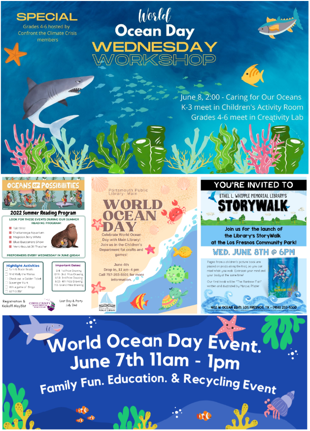 View this email in your browser<https://gcc02.safelinks.protection.outlook.com/?url=https%3A%2F%2Fus13.campaign-archive.com%2F%3Fe%3D__test_email__%26u%3D043a7515ceb3ad45bdd2dd405%26id%3D39e1bb7c94&data=05%7C01%7Clancasterc5%40michigan.gov%7C3f6afc570c7e4ab48a9208da5ab75b5c%7Cd5fb7087377742ad966a892ef47225d1%7C0%7C0%7C637922040822958177%7CUnknown%7CTWFpbGZsb3d8eyJWIjoiMC4wLjAwMDAiLCJQIjoiV2luMzIiLCJBTiI6Ik1haWwiLCJXVCI6Mn0%3D%7C3000%7C%7C%7C&sdata=bNLKmxCUUnzkDTc7eIykGw6owf2myYTdv8rcKJ2pIKI%3D&reserved=0> [https://gallery.mailchimp.com/043a7515ceb3ad45bdd2dd405/images/ed31fdf7-bdb5...] [https://mcusercontent.com/043a7515ceb3ad45bdd2dd405/images/d8ee8449-4e6f-9ec...] Looking for more ideas? Looking for a supportive community focused on summer programming? Join the CSLP facebook group!: https://www.facebook.com/groups/cslp.planning/about/<https://gcc02.safelinks.protection.outlook.com/?url=https%3A%2F%2Fwww.facebook.com%2Fgroups%2Fcslp.planning%2Fabout%2F&data=05%7C01%7Clancasterc5%40michigan.gov%7C3f6afc570c7e4ab48a9208da5ab75b5c%7Cd5fb7087377742ad966a892ef47225d1%7C0%7C0%7C637922040822958177%7CUnknown%7CTWFpbGZsb3d8eyJWIjoiMC4wLjAwMDAiLCJQIjoiV2luMzIiLCJBTiI6Ik1haWwiLCJXVCI6Mn0%3D%7C3000%7C%7C%7C&sdata=ifNBJ0pubZi7bmXKugPvSl9MoZ20fjGtkaIikf%2Fn%2FY8%3D&reserved=0> [https://mcusercontent.com/043a7515ceb3ad45bdd2dd405/images/d592fb8f-ec3f-d64...] Shirts to Quilts! Angela Edwards of the Wasatch County Library, UT, had sixteen years of CSLP t-shirts, and since they had served their purpose, she turned them into quilts! [https://mcusercontent.com/043a7515ceb3ad45bdd2dd405/images/cf04fd72-7f52-d44...] The quilts were made to fit a twin bed, and they were donated to the Utah Library Association to use in their silent auction at their Annual Conference this year. [https://mcusercontent.com/043a7515ceb3ad45bdd2dd405/_compresseds/27acf572-2e...] The bidding started on Wednesday afternoon and concluded on Thursday evening. Both quilts brought in more money than they were valued at. One of the winning bidders said that she was so excited because the quilt she won included themes she had participated in as a Youth Services Librarian. The funds from the auction went to a scholarship account to help fund opportunities for library staff to attend further trainings or conferences. Beautiful! What "Possibilities" are you exploring this summer? Please send your photos, ideas, and any informative details to Luke Kralik at: luke.kralik@cslpreads.org<mailto:luke.kralik@cslpreads.org> I would love to share them in our newsletter. Looking for some ideas for 2022 to use or share? https://www.pinterest.com/cslpreads/<https://gcc02.safelinks.protection.outlook.com/?url=https%3A%2F%2Fwww.pinterest.com%2Fcslpreads%2F&data=05%7C01%7Clancasterc5%40michigan.gov%7C3f6afc570c7e4ab48a9208da5ab75b5c%7Cd5fb7087377742ad966a892ef47225d1%7C0%7C0%7C637922040822958177%7CUnknown%7CTWFpbGZsb3d8eyJWIjoiMC4wLjAwMDAiLCJQIjoiV2luMzIiLCJBTiI6Ik1haWwiLCJXVCI6Mn0%3D%7C3000%7C%7C%7C&sdata=qtN9qY5Wxkqw7mbJbZjPYc%2FIDErRs2NPxfdXssvzGUE%3D&reserved=0> WorldOceanDay.org is a resource for you all summer long! WorldOceanDay.org<https://gcc02.safelinks.protection.outlook.com/?url=https%3A%2F%2Fworldoceanday.org%2F&data=05%7C01%7Clancasterc5%40michigan.gov%7C3f6afc570c7e4ab48a9208da5ab75b5c%7Cd5fb7087377742ad966a892ef47225d1%7C0%7C0%7C637922040822958177%7CUnknown%7CTWFpbGZsb3d8eyJWIjoiMC4wLjAwMDAiLCJQIjoiV2luMzIiLCJBTiI6Ik1haWwiLCJXVCI6Mn0%3D%7C3000%7C%7C%7C&sdata=QtqsNCrpQBIKi95UHm%2BCVnpjo9k45EBVF2rFIApo78Q%3D&reserved=0> enthusiastically partners with CSLP and the 2022 Oceans of Possibilities Summer Reading program to publicize your activities to more community members - all summer long! Use this submission form<https://gcc02.safelinks.protection.outlook.com/?url=https%3A%2F%2Fworldoceanday.org%2Fevents-calendar%2Fcommunity%2Fadd%2F&data=05%7C01%7Clancasterc5%40michigan.gov%7C3f6afc570c7e4ab48a9208da5ab75b5c%7Cd5fb7087377742ad966a892ef47225d1%7C0%7C0%7C637922040822958177%7CUnknown%7CTWFpbGZsb3d8eyJWIjoiMC4wLjAwMDAiLCJQIjoiV2luMzIiLCJBTiI6Ik1haWwiLCJXVCI6Mn0%3D%7C3000%7C%7C%7C&sdata=D60rFVCcTYthHyEGxitXzygOqr%2FhTLmsggV3DpPkoV8%3D&reserved=0> and the sample event description resource,<https://gcc02.safelinks.protection.outlook.com/?url=https%3A%2F%2Fworldoceanday.org%2Fresources%2Fcslp-summer%2F&data=05%7C01%7Clancasterc5%40michigan.gov%7C3f6afc570c7e4ab48a9208da5ab75b5c%7Cd5fb7087377742ad966a892ef47225d1%7C0%7C0%7C637922040822958177%7CUnknown%7CTWFpbGZsb3d8eyJWIjoiMC4wLjAwMDAiLCJQIjoiV2luMzIiLCJBTiI6Ik1haWwiLCJXVCI6Mn0%3D%7C3000%7C%7C%7C&sdata=lVbhlIZ9oPjEw7jUQPRAFey2jlIZijULrFVO%2FZiCia8%3D&reserved=0> specifically created for Oceans of Possibilities program participants, to help you easily submit your activities! Submit all of your remaining activities individually to increase publicity, easily post recurring weekly events with just one submission, or post your full calendar of activities and link to your events calendar. HIGHLIGHTS from World Ocean Day, 8 June, and throughout National Ocean Month: Our blue planet needs protecting 365 days of the year, and June is a special time to celebrate and take action! Libraries on the coast and far inland celebrated by educating community members about the importance of our ocean and all our waterways. Check out some of the events held by our member libraries: * World Ocean Day at Portsmouth Public Library (VA)<https://gcc02.safelinks.protection.outlook.com/?url=https%3A%2F%2Fworldoceanday.org%2Fevent%2Fworld-ocean-day-at-portsmouth-public-library%2F&data=05%7C01%7Clancasterc5%40michigan.gov%7C3f6afc570c7e4ab48a9208da5ab75b5c%7Cd5fb7087377742ad966a892ef47225d1%7C0%7C0%7C637922040822958177%7CUnknown%7CTWFpbGZsb3d8eyJWIjoiMC4wLjAwMDAiLCJQIjoiV2luMzIiLCJBTiI6Ik1haWwiLCJXVCI6Mn0%3D%7C3000%7C%7C%7C&sdata=2QejPfT%2FIfpsBMGi%2BjiptWlouMi8NA9g5MFcSqZRpB8%3D&reserved=0> * Summer Reading 2022 at Coffee County Manchester Public Library (TN)<https://gcc02.safelinks.protection.outlook.com/?url=https%3A%2F%2Fworldo