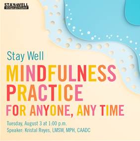 Hello Everyone, I am reaching out on behalf of Erin Wallace. She has some new StayWell programming coming up. Please reach out to Erin at brightleafllc@gmail.com<mailto:brightleafllc@gmail.com> for program information, marketing blurbs, and social media graphics. Here is a an example of the promotional information available (she has much more!): Wednesday, August 18, 2:00 p.m. - Love Yourselves Post copy: In the final installment of the Draw Your Feelings! interactive workshop for parents and their children ages 2 to 10, the discussion and drawing exercise centers around familial love. The object: to help build parental self-esteem and strengthen family bonds. Register at https://bit.ly/36pXtro <https://bit.ly/36pXtro> . Brought to you by the Stay Well program at the Michigan Department of Health and Human Services. To learn more, visit Michigan.gov/StayWell<http://michigan.gov/Stay%20Well>. Tuesday, August 3 - Mindfulness Practice for Anyone, Any Time Post copy: What is mindfulness, and how can it benefit our health and wellness? Join us as Kristal Reyes, Director of Crisis Services at Detroit's Neighborhood Service Organization, teaches five real-world ways to expand your mindfulness practice. Register at https://bit.ly/37b49tW. Brought to you by the Stay Well program at the Michigan Department of Health and Human Services. To learn more, visit Michigan.gov/StayWell<http://michigan.gov/StayWell>. Healthcare Workers & First Responders Support Group - every Thursday, starting August 5 Healthcare workers and first responders: if the pandemic has left you burned out, anxious, or just feeling "off," it may help to talk it through with others who know what you're dealing with. Register for our virtual support group designed specifically for you, hosted by our Stay Well counseling team. Register for one or more sessions at: https://bit.ly/3vvFoTP. [cid:image002.jpg@01D78906.7F7D34C0] [cid:image003.jpg@01D78906.7F7D34C0] [cid:image004.jpg@01D78906.7F7D34C0] Thank you! Hannah Ball Community Services Coordinator Jackson District Library 244 W. Michigan Ave. Jackson, MI 49201 O: 517-905-1347 C: 517-879-7465 ballh@myjdl.com<mailto:ballh@myjdl.com> [Email Logo copy]