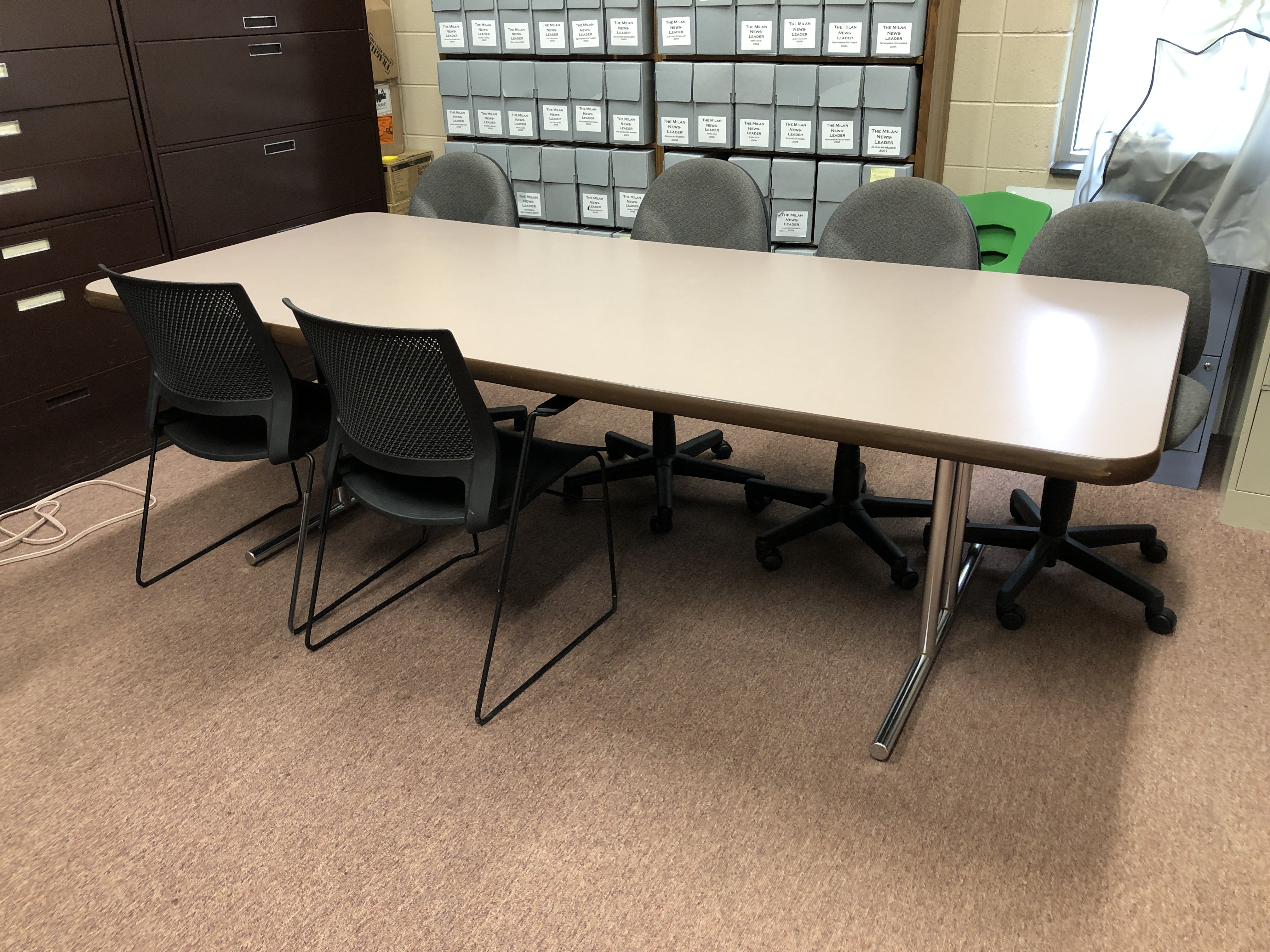 We have a conference table in good condition which is being replaced by modular tables. We are offering it for $75.00 and buyer must pick up (we can bring it out to curbside for pick up). Be aware it's pretty solid (read kinda heavy) but the legs fold up for easier transport. Dimensions are: 8’ Long 3.5’ Wide 29” Tall [cid:2dede703-c91f-4b67-9d43-0c9a0fdbe2d7] Barbara Beaton Assistant Director/Reference Librarian Milan Public Library Milan, MI 48160 734-439-1240 www.milanlibrary.org<http://www.milanlibrary.org> she/her