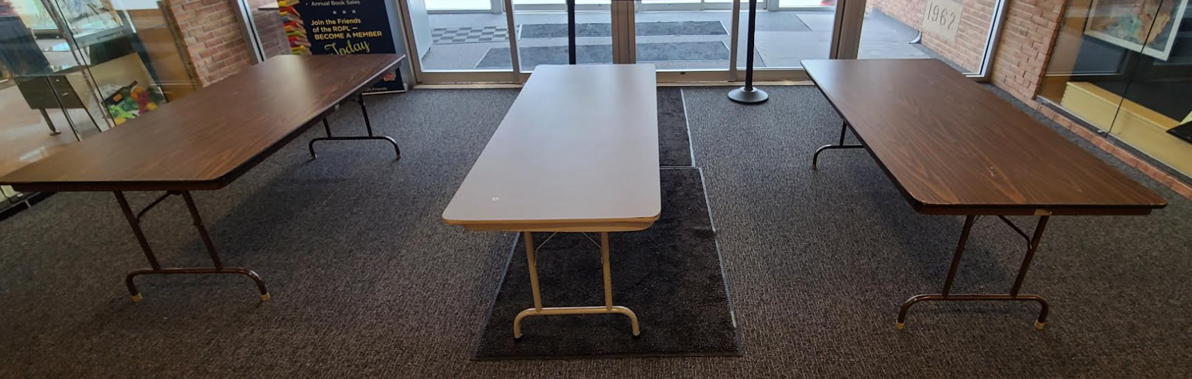 Hello from the Royal Oak Public Library! We have three tables that didn't sell on surplus and we need to get rid of them. Two are brown and one is grey. If you are willing and able to come get them, they can be all yours for the low, low price of FREE. *Please note, library staff will not be available to help move these to your vehicle so please bring a dolly or moving buddy.* Let me know if you are interested. Thanks! [image: image.png] Sincerely, Adrienne Breznau she/her/hers Head of Access Services Royal Oak Public Library 222 E. Eleven Mile Road <https://maps.google.com/?q=222+E.+Eleven+Mile+Road+Royal+Oak,+MI+48067&entry=gmail&source=g> Royal Oak, MI 48067 <https://maps.google.com/?q=222+E.+Eleven+Mile+Road+Royal+Oak,+MI+48067&entry=gmail&source=g> Tel: 248-246-3714 *Think Green! Please, do not print this email unless necessary.*