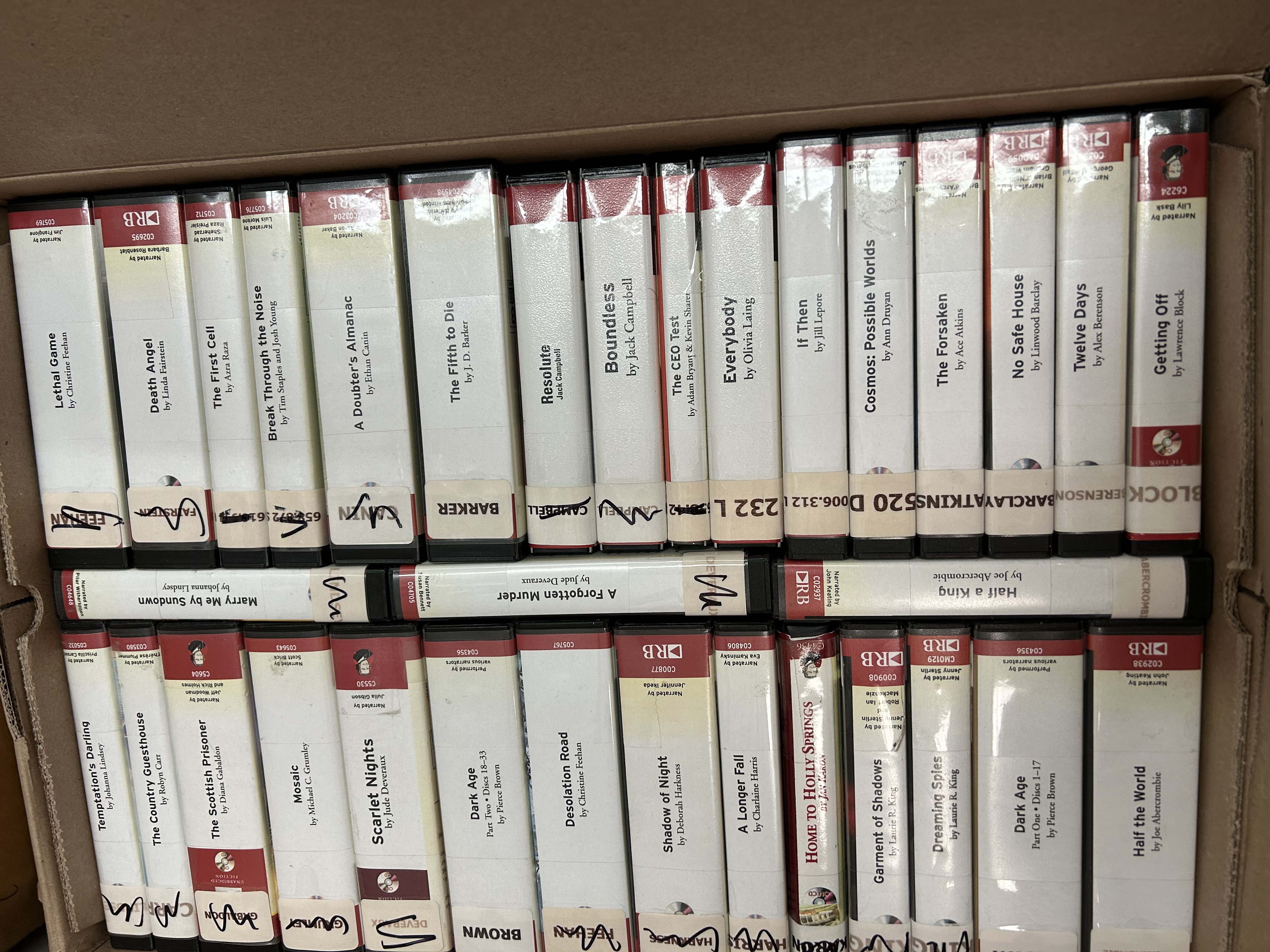 From the Collection that Just Won't Die, we have lots of books on CD and MP3s that we'd love to send you way. Send your rides code and either titles you want or just send a number and I'll send you that many.