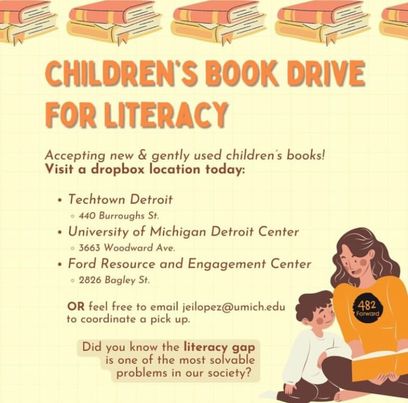 Just sharing this book drive being run by an intern at 482Forward! Sincerely, Marwah Ayache (she/her), MLIS Librarian I Cell Phone: (313) 421-2243 linktr.ee/cutiewiththecards My work schedule may be different from yours. Please do not feel obligated to respond outside of your schedule.