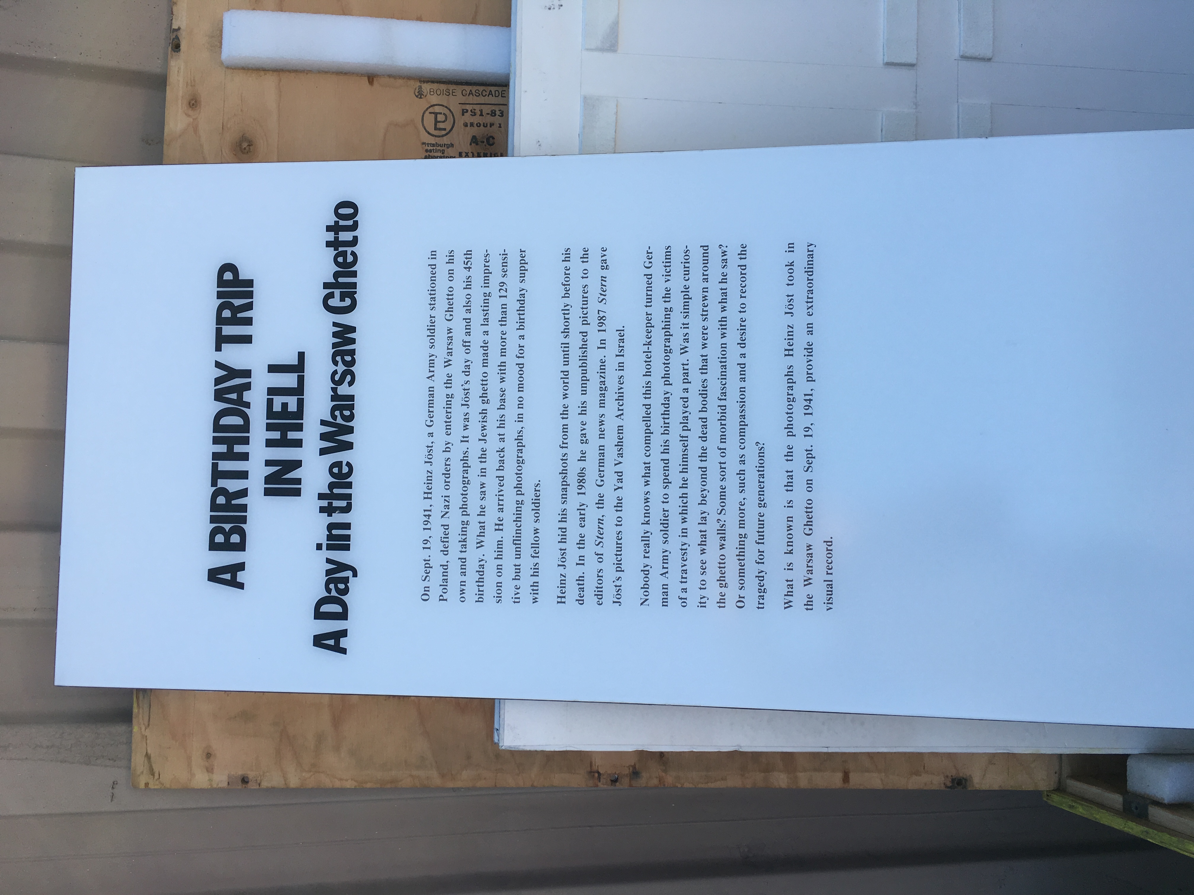 Hello! The Holocaust Memorial Center in West Bloomfield has approximately 12 crates of Holocaust Memorabilia that showcase as an exhibit. We were asked here at Brandon if we could house such items, but sadly we do not have the space to hold such a collection. If your library or an organization you know of would like to have these items, they are up for grabs. Otherwise they will be disposed of if not claimed. The crates contain photos, plaques, and signs dedicated to the exhibit (see attached pictures). Please contact me off list if your organization would be interested in these items. The Holocaust Memorial Center has asked that whomever wishes to claim these items also picks them up. Thank you for your time! Always, _Shauna Quick_Adult Services Library AssociateBrandon Township Public Librarysquick@brandonlibrary.org248-627-1461