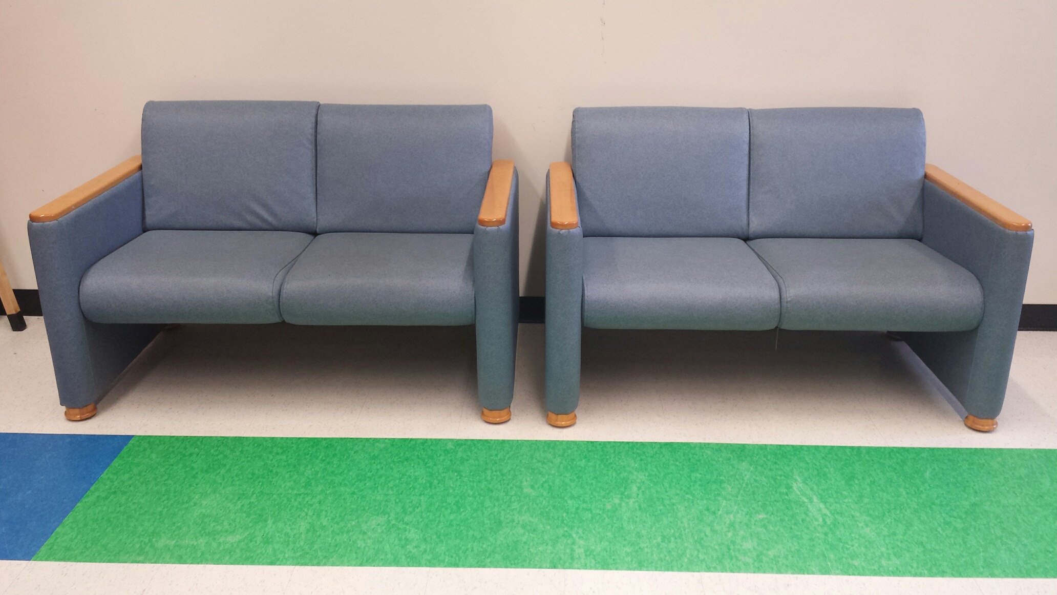 Hello Everyone! The Clarkston Independence District Library staff has been Spring cleaning and has a variety of furniture pieces that we will give to libraries that need them. Recipient must pick up. All item descriptions are listed below and photos are attached. Please email me off-list if you're interested. Thanks! Julie Julie Meredith Director Clarkston Independence District Library 6495 Clarkston Rd Clarkston, MI 48346 248.625.2212 juliem@indelib.org Free to a library that needs them - Recipient must pick up: Green Youth Table (Medium Oak edge with green laminate top and black wood base) 72"L X 30"W X 24 ½"H Two Light Blue Loveseats (Antibacterial, wipe-clean surface with medium oak accents) 51 ½"W X 31"D X 32"H Wooden Rocking Chair (light wood finish) 25"W X 37 ½"H, rockers 30"L Seat is 20"W X 16 ½"D X 17"H 4 Small Square Padded Stools (Dark Teal cushion with metal legs) Approximately 15"W X 15"L X 15"H