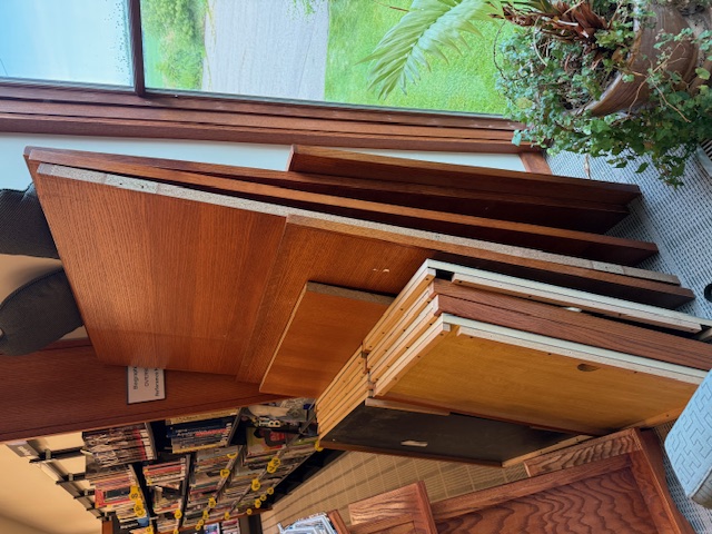 FREE Already disassembled and ready for pick-up. You pick-up and take. Can be used as single double-sided units or assembled together. Entire unit dimensions: 67.5" W x 144.5" L x 44" H Please see the attached pictures. Thanks, Anne Anne Richards, MLIS Librarian - Collection Development Richland Community Library 8951 Park St. Richland, MI 49083 269-629-9085 -- This message has been scanned by E.F.A. Project and is believed to be clean.