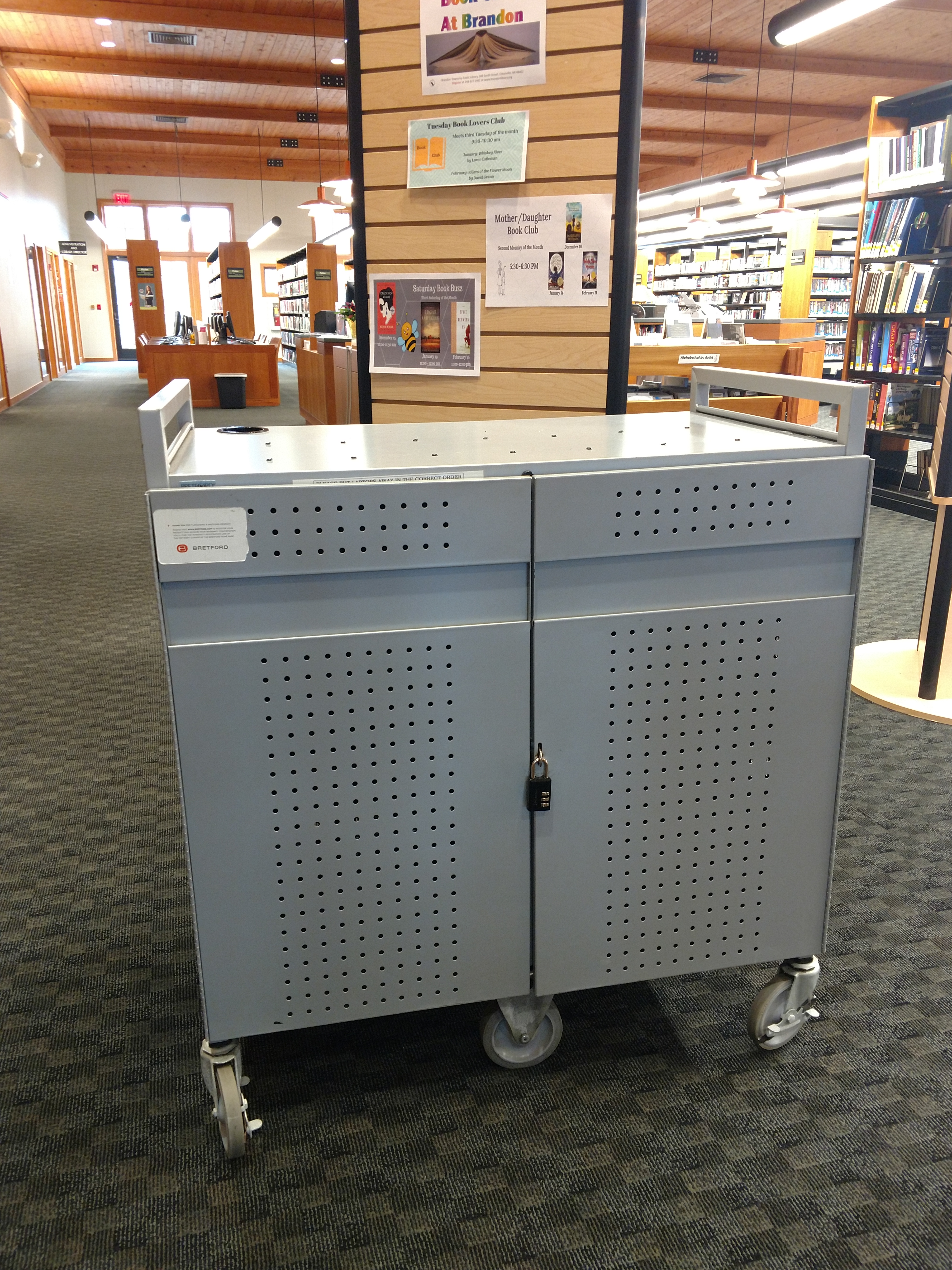 We no longer have a need for the FREE laptop computer cart, it needs a new home. The cart will hold 16 laptop computers. It rolls, but with difficulty. It is lockable. Pictures are attached. If you are interested in the FREE laptop computer cart - please let us know. We need to have it picked up before January 4th. Tam Cummings -- Adult Services Brandon Township Public Library 248-627-1461