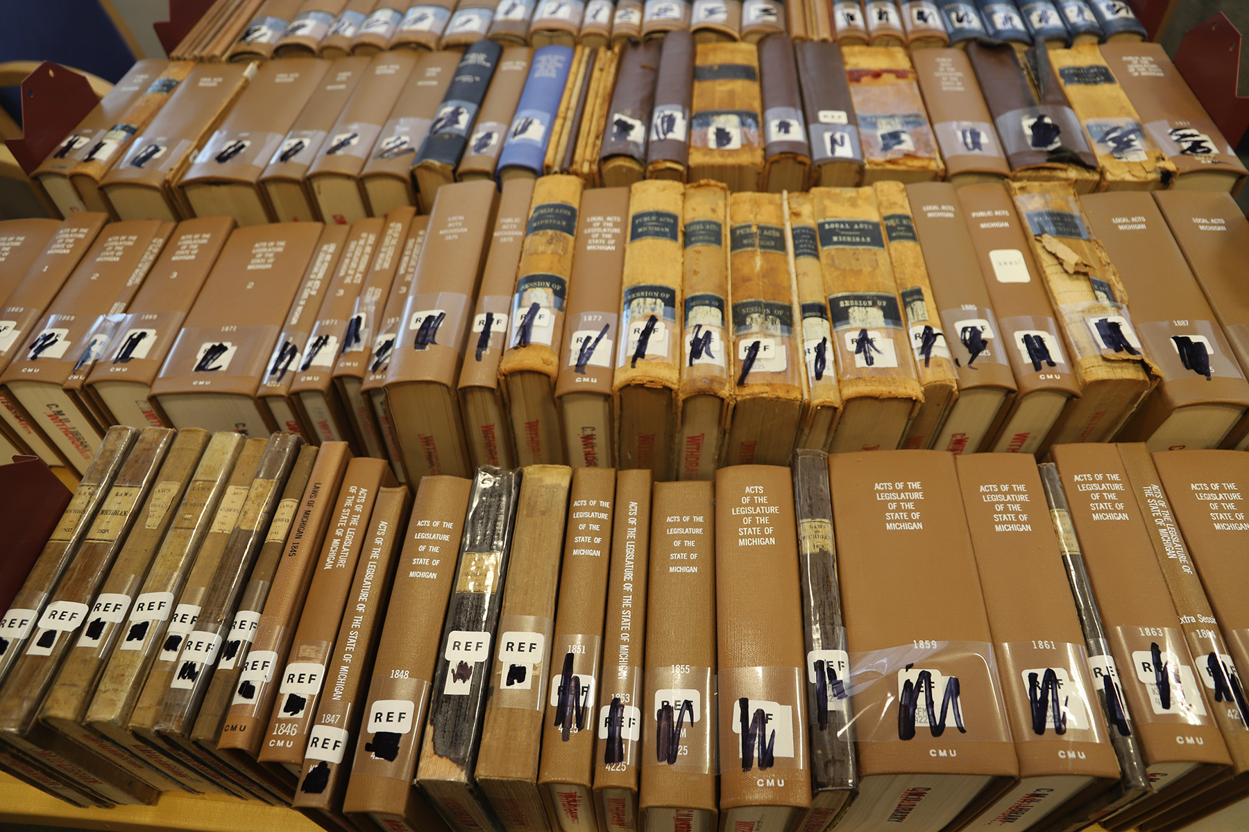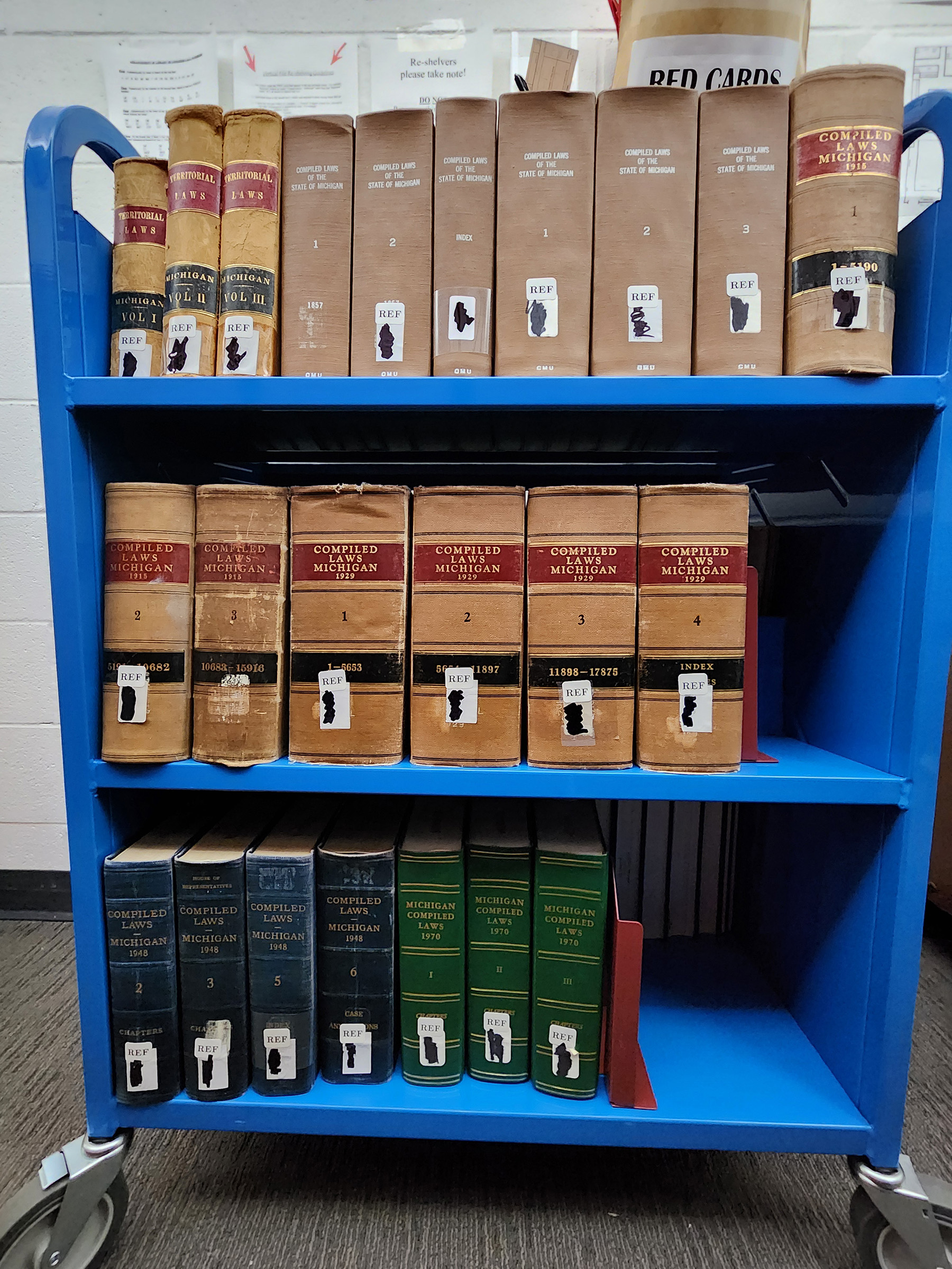 Hello Everyone, The CMU Libraries and the Clarke Historical Library have a host of duplicate copies of Michigan government documents - specifically Public and Local Acts (1837-1990s), Opinions of the Attorney General (1911-66), and Michigan Compiled Laws (1850s-1940s). These are not complete runs of any title, but there are a ton of materials (well, maybe 400 lbs. worth). Attached are some images of what is available. If your library is interested, please contact us and we can help round out the gaps in your Michigan government document holdings. Have an excellent day, Bryan Whitledge Public Services Librarian Clarke Historical Library Central Michigan University 989-774-2159 whitl1br@cmich.edu