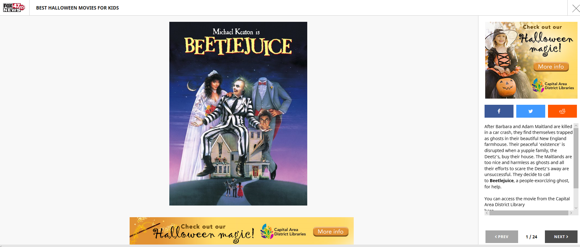 Indie Author Event In partnership with the Library of Michigan, we are excited to host presentations on the business side of self-publishing, featuring Lansing area experts and a local author panel. Scheduled to appear: John Addis (self-publishing and marketing); Julie Taylor (self-publishing and the Espresso Book Machine at MSU Libraries); Laura Klynstra (book design); Author Panel (Stephen Mack Jones, Alexandria Sure, Tobin Buhk and Kristie Dickinson). A selection of titles will be available for sale and signing. This FREE event will take place Saturday, Oct. 13 from 1-5 p.m. at CADL Downtown Lansing, 401 S. Capitol Avenue. Collection Promotion As a way to promote our Halloween movie collection and events, CADL is partnering with FOX 47. The station has created a special section on its website that includes Halloween content like best movies, decorating tips, safety tips etc. CADL has provided some of the titles for the Best Halloween Movies for Kids section. Within the special section, there's a link to our catalog and ads linked to our event database. We also traded a Kindle Fire for inclusion on station commercials that promote the online content. (Attached is a screenshot) New Partnership Cosplay continues to grow in popularity so CADL has entered into a new partnership that will help us connect to this culture through events (library and on-site) and in-branch displays. A new partnership with How-to Halloween will get CADL in front of attendees of the How-to Halloween and Downtown Lansing Zombie Walk events to create awareness of our digital comics and other related services. More importantly, this partnership provides us with access to an impressive inventory of props and vehicles like the Batmobile, Batpod and the iconic Mystery Machine from Scooby-Doo. We will also work with H2H on creating CADL exclusive props. (Mystery Machine and Batmobile images are attached) Podcasts CADLcast featuring Dr. Mona Hanna- Attisha and Retired Detective Derrick Parker, who was part of the NYPD's Rap Intelligence Unit: https://bit.ly/2xIFwCU Reader's Roundtable featuring discussion with Marsh King's Daughter author Karen Dionne: https://bit.ly/2NKViI7 Executive Edition featuring Capital Area Michigan Works CEO Edythe Hatter-Williams and Helen Mickens: https://bit.ly/2N7UyaP Trenton M. Smiley Marketing & Communications Director Capital Area District Libraries-Administration 401 S. Capitol Ave., Lansing, MI 48933 517-367-6348 | smileyt@cadl.org<mailto:smileyt@cadl.org> www.cadl.org<https://urldefense.proofpoint.com/v2/url?u=http-3A__www.cadl.org&d=DQMFAg&c=euGZstcaTDllvimEN8b7jXrwqOf-v5A_CdpgnVfiiMM&r=eQ4zwfvICxqHRkdUL5_5Ew&m=10jJJ5KSdHz2-h8X5t1pHUHubNn2DWMq89Hf3-OPD2Y&s=3rbAsyBXjj2NNLBsgfvAFXBIOTtrw486OCi5yA3tUNc&e=> | facebook.com/cadlibrary<https://urldefense.proofpoint.com/v2/url?u=https-3A__www.facebook.com_cadlibrary-3Fref-3Dhl&d=DQMFAg&c=euGZstcaTDllvimEN8b7jXrwqOf-v5A_CdpgnVfiiMM&r=eQ4zwfvICxqHRkdUL5_5Ew&m=10jJJ5KSdHz2-h8X5t1pHUHubNn2DWMq89Hf3-OPD2Y&s=Mh_HT9zWTBaQYNJrkGn5UQkZsHahpNWPo3T1jUZsMTo&e=> | twitter.com/cadl<https://urldefense.proofpoint.com/v2/url?u=http-3A__www.twitter.com_cadl&d=DQMFAg&c=euGZstcaTDllvimEN8b7jXrwqOf-v5A_CdpgnVfiiMM&r=eQ4zwfvICxqHRkdUL5_5Ew&m=10jJJ5KSdHz2-h8X5t1pHUHubNn2DWMq89Hf3-OPD2Y&s=kjEu80TS31ymwngLwD5AH2BEd7u0lbjJEff7iRegUfQ&e=>