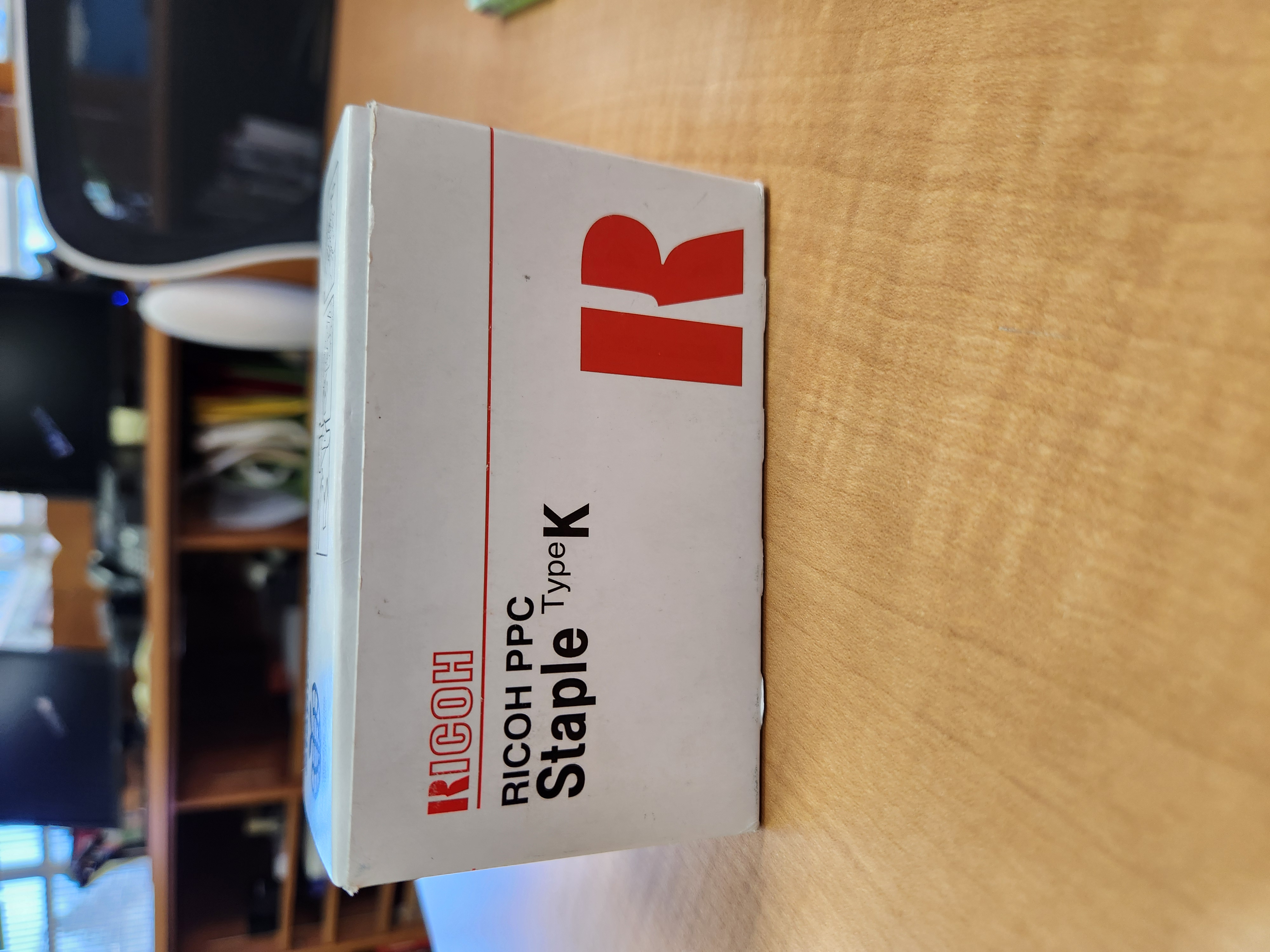 We have one extra printer staple cartridge we'd like to find a new home for. It's a Ricoh 410801 Type K cartridge. Thank you, Breandan Gunner Administrative Services Coordinator Schultz-Holmes District Library