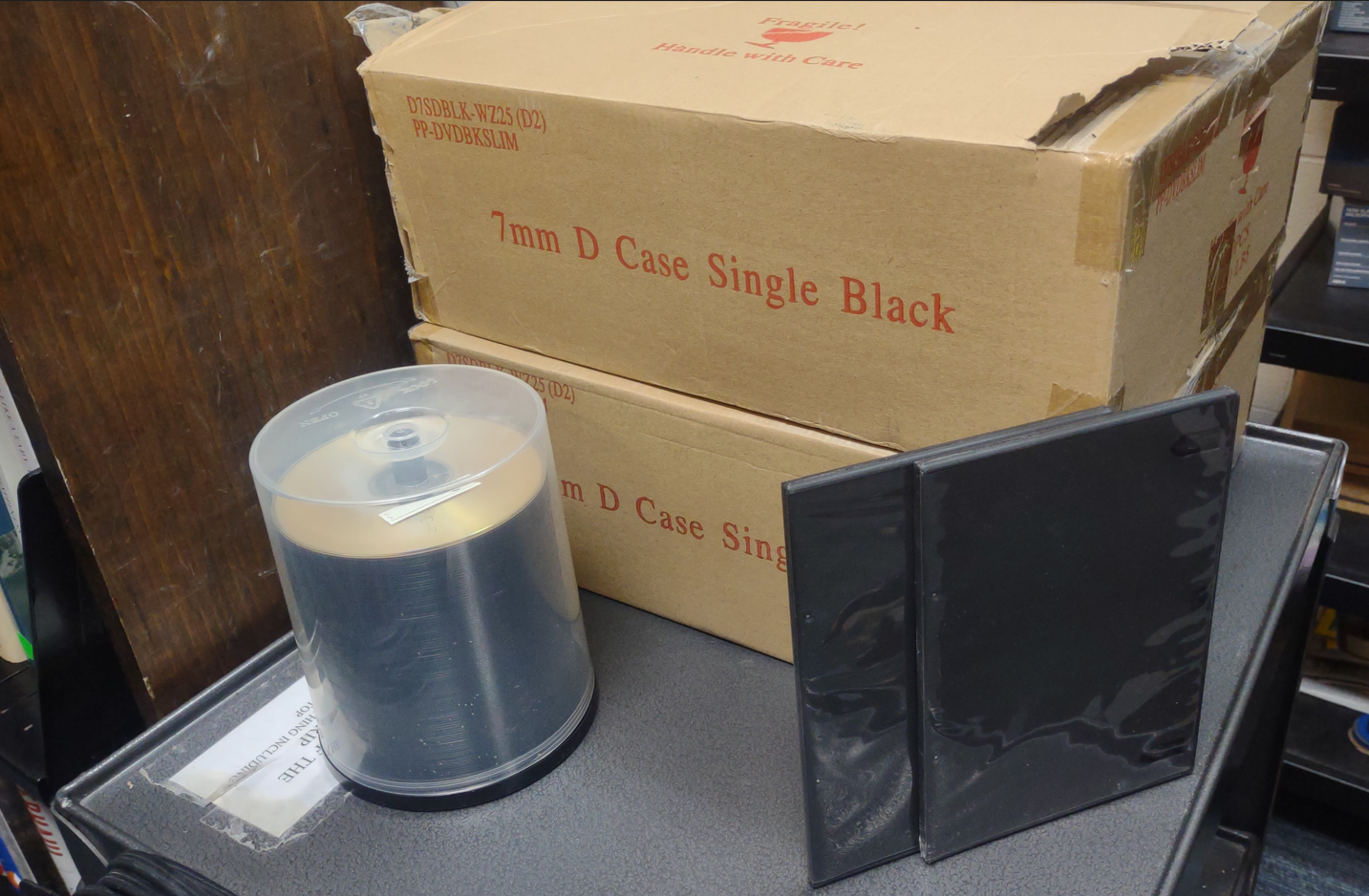 Hello fabulous library folks, We are clearing out space and have freebies available. Please let me know if you can help us rehome about 200 new slimline DVD cases or a stack of unused blank CDs.
