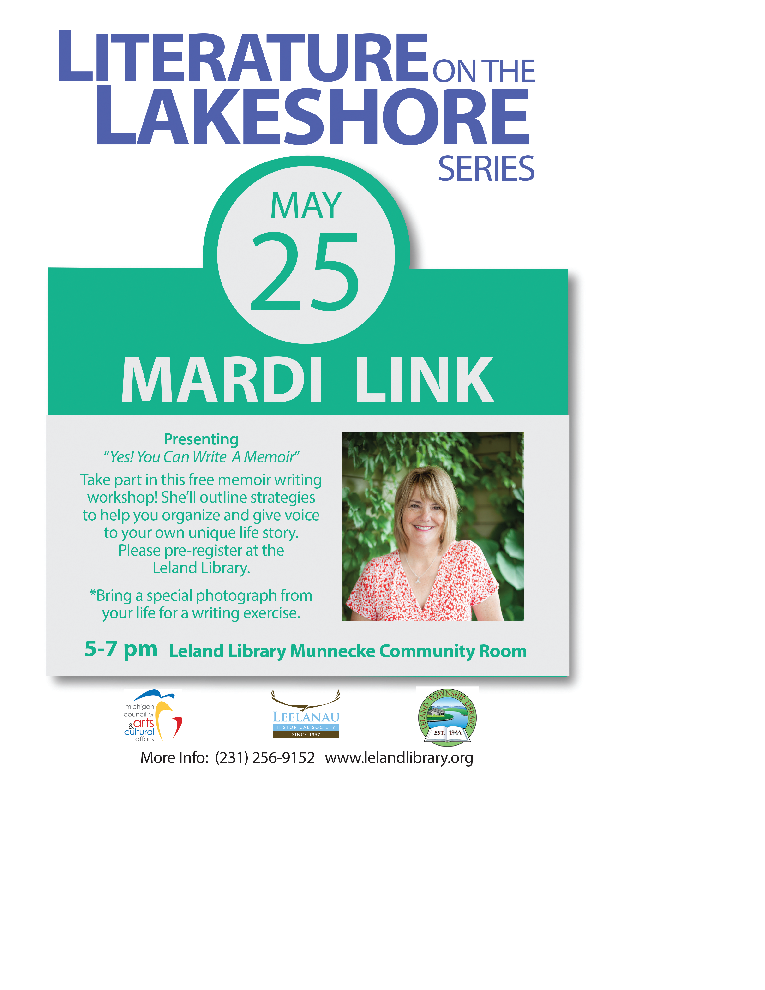 Hello All! Wanted to share that we had Michigan author, Mardi Jo Link present last week at our library. Her program was terrific and received rave reviews. I've attached a copy of our poster. Highly recommended; she's a great, fun presenter. Here is a description: "Yes, you CAN write a memoir!" That's the title of a new writing workshop developed by me, Michigan Notable Author, Mardi Link. The workshop lasts two hours and includes helpful writing prompts, opportunities for participants to read their work out loud to the group, (only if they so desire - promise!) a suggested reading list and handouts, publishing insight, and a personal on-site critique. The cost is $500 all inclusive, which means workshop fee, mileage, and all handouts. My work has focused on non-fiction (Bootstrapper,The Drummond Girls, Wicked Takes the Witness Stand, Isadore's Secret, and When Evil Came to Good Hart,) and I'd like to share what I've learned with other writers. Her contact information: Mardi Jo Link THE DRUMMOND GIRLS "So pick up this book: You'll laugh; you'll cry; you'll ponder . . . the fierce friendships at the heart of this remarkable story." - BookPage <http://www.mardijolink.com/> mardijolink.com Sylvia Merz, Director Leland Township Library 203 E. Cedar St., P.O. Box 736 Leland, MI 49654-0736 PH: 231-256-9152 FAX: 231-256-8847 Monday, Tuesday, Thursday, & Friday - 10 to 5 Wednesday-10 to 6 Saturday-10 to 2 lelandlibrary.org