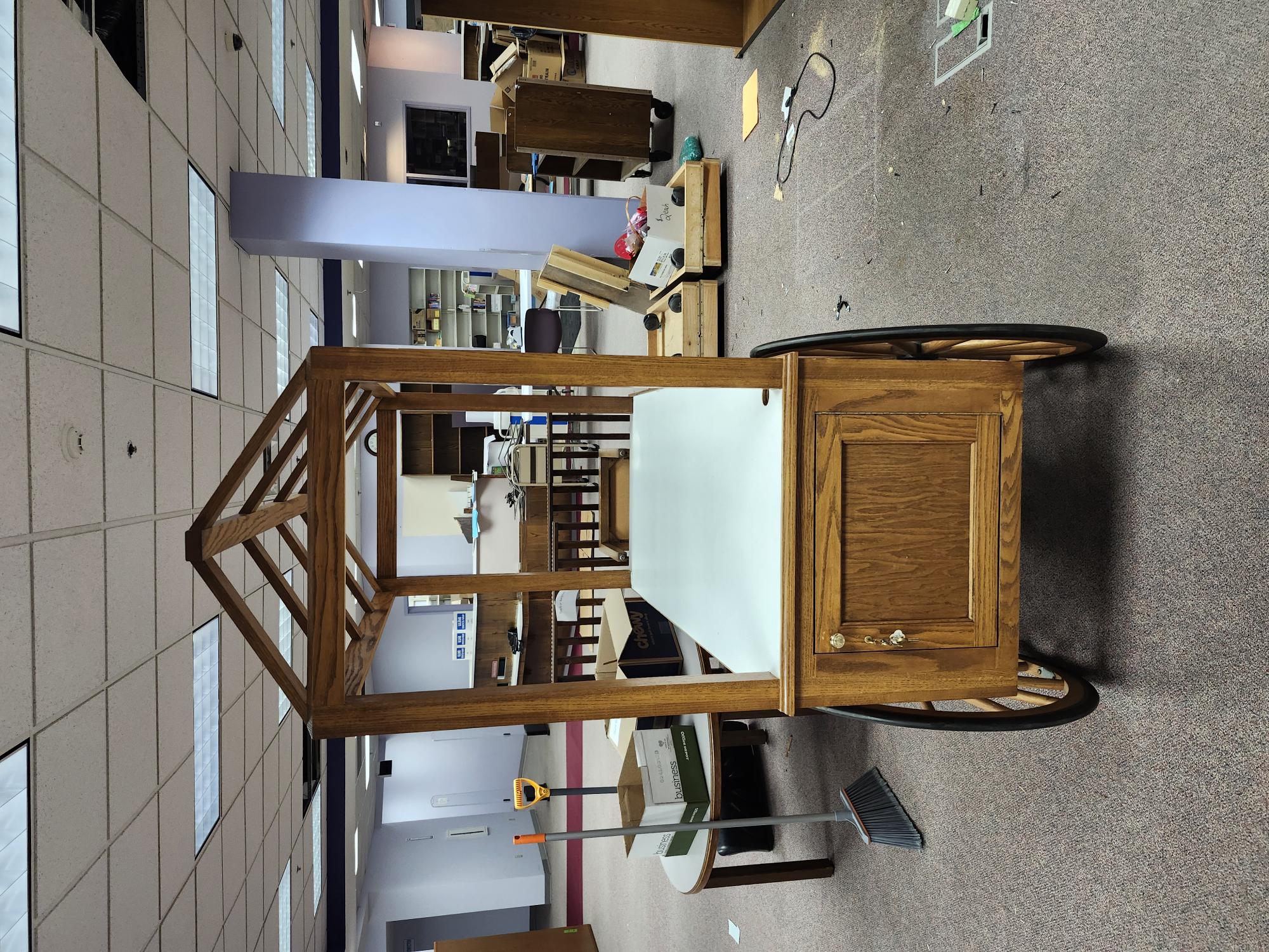 Hi Jackie, CMPL is tentatively interested. We've been working with LDA on a similar concept for our lobby. Our design would have more capacity but I like that this could be moved and the price is right if it doesn't work out. Can I get back to you tomorrow? Hope all is going well with your big project! Larry ________________________________ From: Michlib-l <michlib-l-bounces@mcls.org> on behalf of Jacalynn Harvey (Roseville Public Library) via Michlib-l <michlib-l@mcls.org> Sent: Tuesday, July 8, 2025 7:42:48 PM To: Michlib-L <michlib-l@mcls.org> Subject: [Michlib-l] Peddlar's Cart - free to a good library or museum home The Peddlar's Cart in the photos is free to a good library or museum home. The Friends of the Roseville Public Library purchased the Peddlar's Cart to use as a prop to promote the Friends and their activities in 1998 from the Otto Building Company in Burton, Michigan. The Friends stopped using it approximately 10 years ago and it has been in the Library's (dry) basement since. It is in good shape with some scarring on the white laminated surface. It has two small drawers and a cubby that lock (keys are are available) for storage. These carts from Otto Building were sold to other libraries across the country for the same "display" purpose including the Alexandrian Public Library in Indiana. I have a folder that includes the original invoice and blueprints for the cart. Measurements: length - 60" height to the top of the slatted canopy - 79" width - 28" The cart is very heavy and does not move easily, however you can move it short distances safely. The Friends rarely moved it from the lobby. I could not see a way to easily remove the four canopy supports and the canopy for transport. It may have to be transported in one piece. You must be able to move it into your vehicle as we may not always have assistance available. The blueprints and a copy of the invoice with the name of the manufacturer go with the cart. The Roseville Public Library building is currently being prepared for renovation and the cart must go in preparation for contractors to begin the demolition of the interior. If you would like the cart, it must be picked up by July 31. I'll send a message if/when the cart is claimed. Best, Jackie Jacalynn Harvey Director Roseville Public Library 29777 Gratiot Avenue Roseville, MI 48066 586-447-4550 rosevillelibrary.org Sent from my T-Mobile 5G Device Get Outlook for Android<https://aka.ms/AAb9ysg>