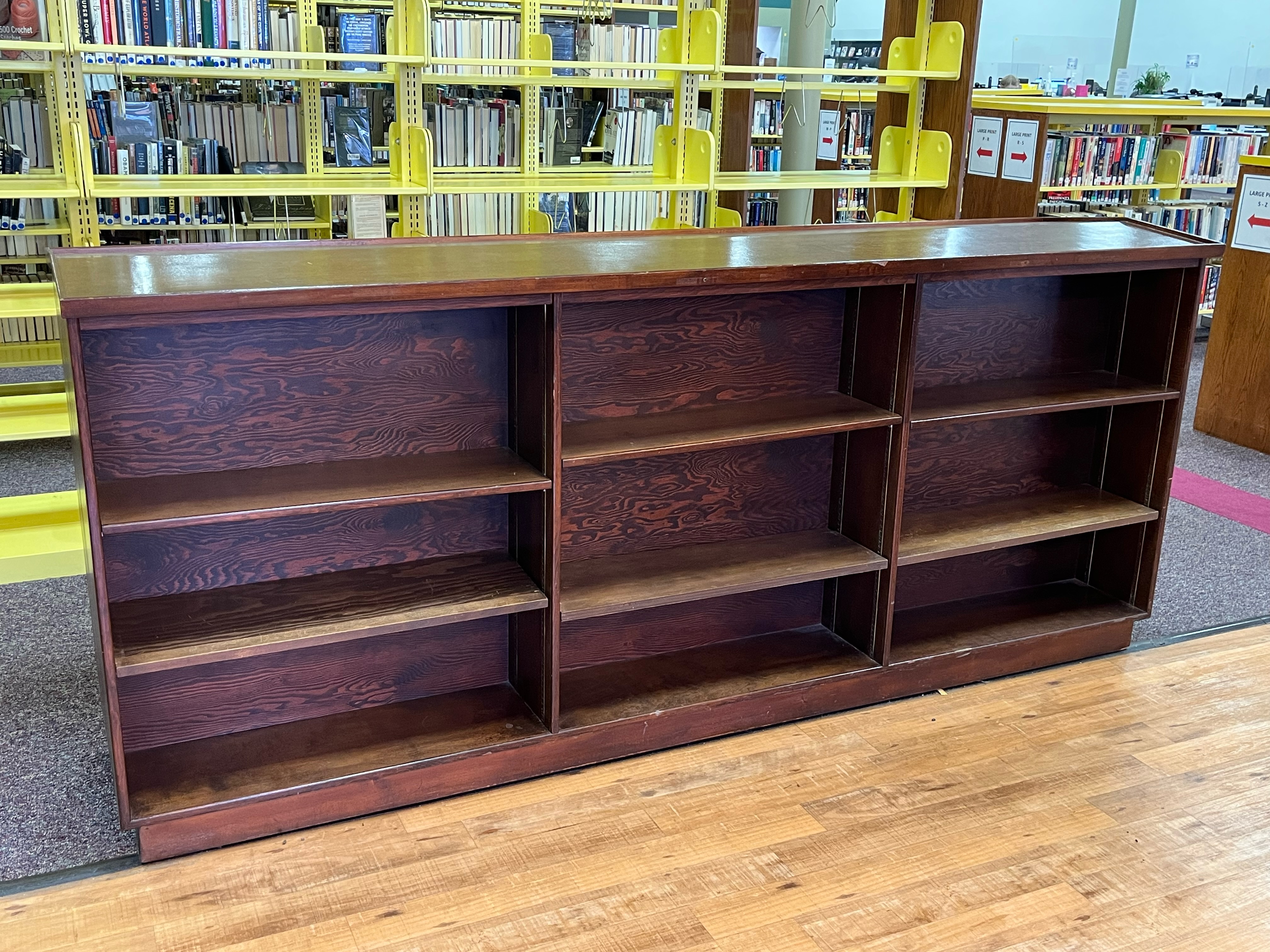 Good afternoon, We have this beautiful bookcase with adjustable shelves available. Dimensions: 96.75 inches long, 23.5 inches wide, 42 inches tall. Email me with any questions or to arrange pick up. Thank you, Chelsey Boss Assistant Director Adrian District Library 143 E. Maumee St. Adrian, MI 49221 517.265.2265 (o) 517.759.3195 (f) Adrian’s place to connect, explore, and learn.