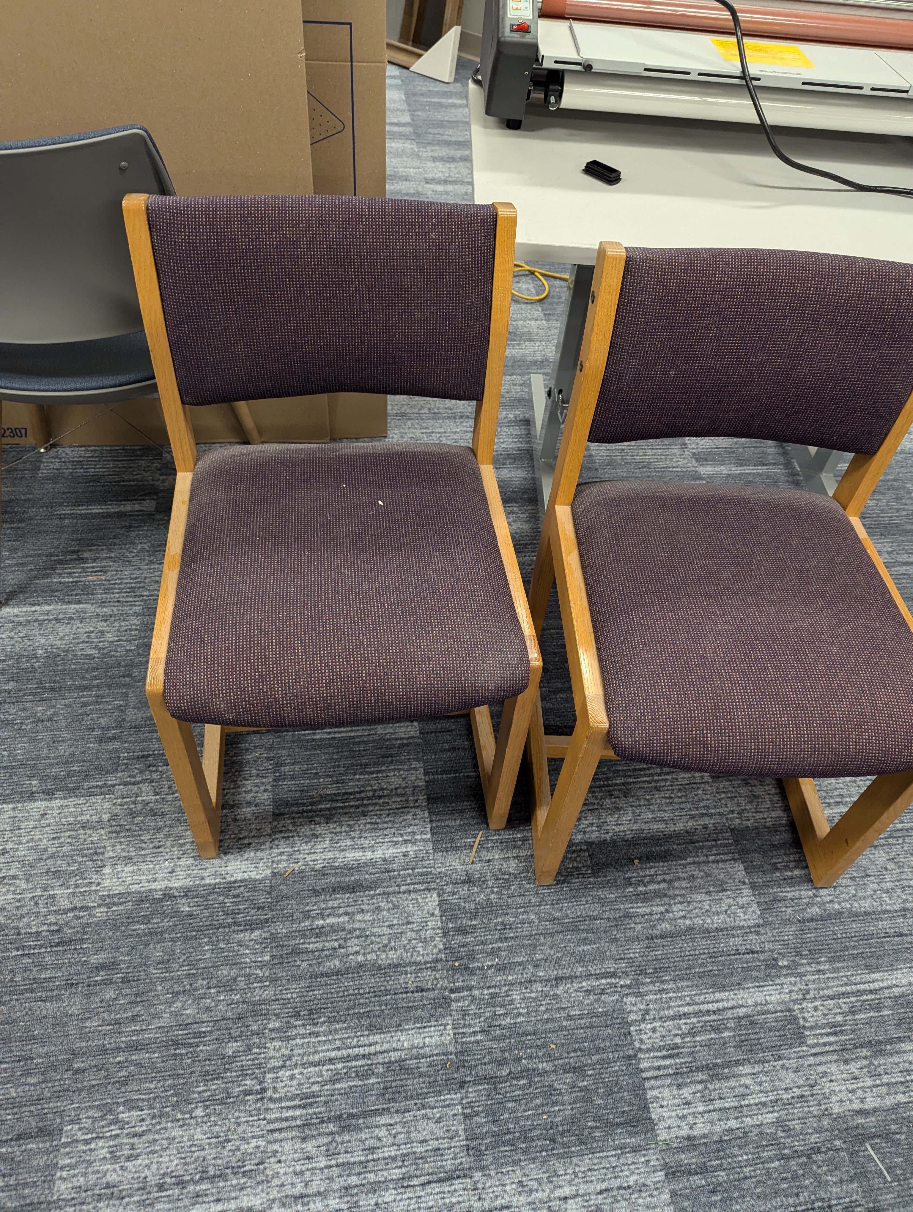We have a group of 7 chairs to give away. They're a bit dusty but solid and will be clean after a vacuuming!