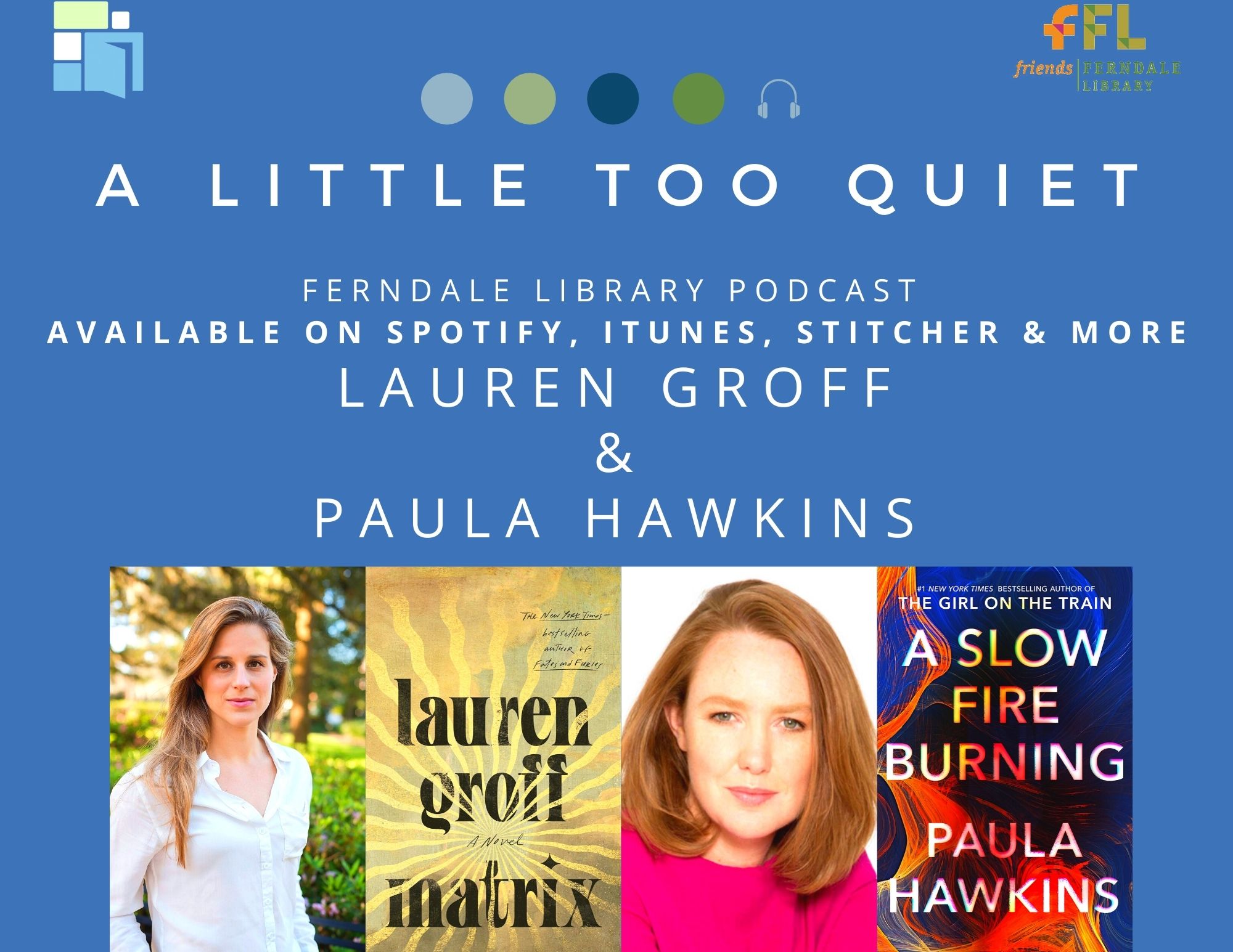 If you're looking for some weekend podcast listening.... Here are our two recent chats with Groff and Hawkins Links (...but you can find us on Spotify, iTunes, etc) https://alittletooquiet.podbean.com/e/paula-hawkins-a-slow-fire-burning/ https://alittletooquiet.podbean.com/e/lauren-groff-matrix/ [image: Copy of Copy of 2a_little_too_quiet2.jpg]