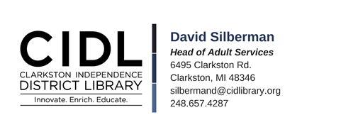 The Clarkston Independence District Library is seeking an enthusiastic, knowledgeable, and friendly individual to strengthen and promote our ties as a key community resource. Full-time Collaborations Librarian Hours: 40 hours per week, includes some weekends and evenings Salary: $48,000 to $57,000 depending on qualifications and experience Benefits: Health, dental, optical insurance; disability and life insurance; vacation, sick and personal days; retirement plan. Primary job duties: Duties include, but are not limited to: * Develop and cultivate relationships for community partners to enhance library services for adult patrons * Plan and coordinate outreach activities and homebound deliveries * Work with other CIDL staff on collaborative programs * Provide quick and accurate reference and readers' advisory for all ages * Assists patrons with computer catalog, electronic resources, and other library resources & equipment * Attends and participates in staff meetings and discussions * Seeks out continuing education opportunities * Develop content to promote library resources and programs in local print publications * Assist in the development of departmental policies, goals, and staff training * Performs other library duties as assigned Qualifications: * MLIS from an ALA accredited institution * Strong Public library/information desk experience * Ability to establish and maintain effective working relationships with staff and community partners * Experience planning programs for adult audience * Experience with using Polaris, MeL, and popular library databases * Collection development experience * Knowledge of Microsoft Office Reports to: Head of Adult Services Send cover letter, resume, and contact information for three references by email to: David Silberman, Head of Adult Services Silbermand@cidlibrary.org<mailto:Silbermand@cidlibrary.org> Deadline for applications: April 17, 2023 An Equal Opportunity Employer [cid:image001.png@01D968A4.D0527390]