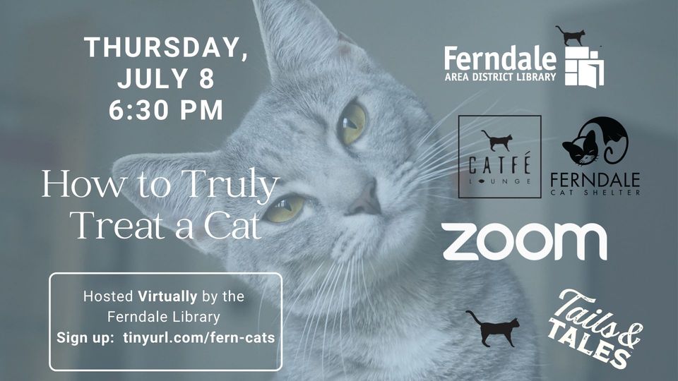 Join us virtually on Thursday, July 8, at 6:30pm Sign up: http://tinyurl.com/fern-cats <https://l.facebook.com/l.php?u=https%3A%2F%2Ftinyurl.com%2Ffern-cats%3Ffbclid%3DIwAR3gq7Gme0TIDNHUh0Z8eqI-YHBQa2gp3LEJimuK-3n9Mq0ndI_Or4ICMWI&h=AT0tl4n5KXUXigqkQm6dAvJqt88eFA-RGzTNByMW9jsgz61GAmdjDrkn5onzNGa4dmShWiKi_-kElemNgpOTzwEb0sUVKINmLfkwQNufLZ-d2UNXvcCCL_NGLbGj2mhOqg&__tn__=q&c[0]=AT0O5EXIKVmtbSnfQF7SoKJjetyfWevFc_kg-gAncDdLkDgqZ75T3AZfQhrMD9651c99ERZMikprBvlz0iwYKu25BFzetO7nZmJcxqj_JkneE0sMi8xBNa79AAKNEUAK3DEhB4DmHEueXzFq40A8CgRR> A volunteer from the Catfe/Ferndale Cat Shelter will talk about how to truly treat a cat, especially when it comes to fostering, adopting, and even feeding neonates. With Q&A from our virtual audience. Click the sign-up link above, and we'll share a Zoom link with you on the date of the event (July 8 ). [image: 193171550_4042836082428884_153870131002272328_n.jpg]