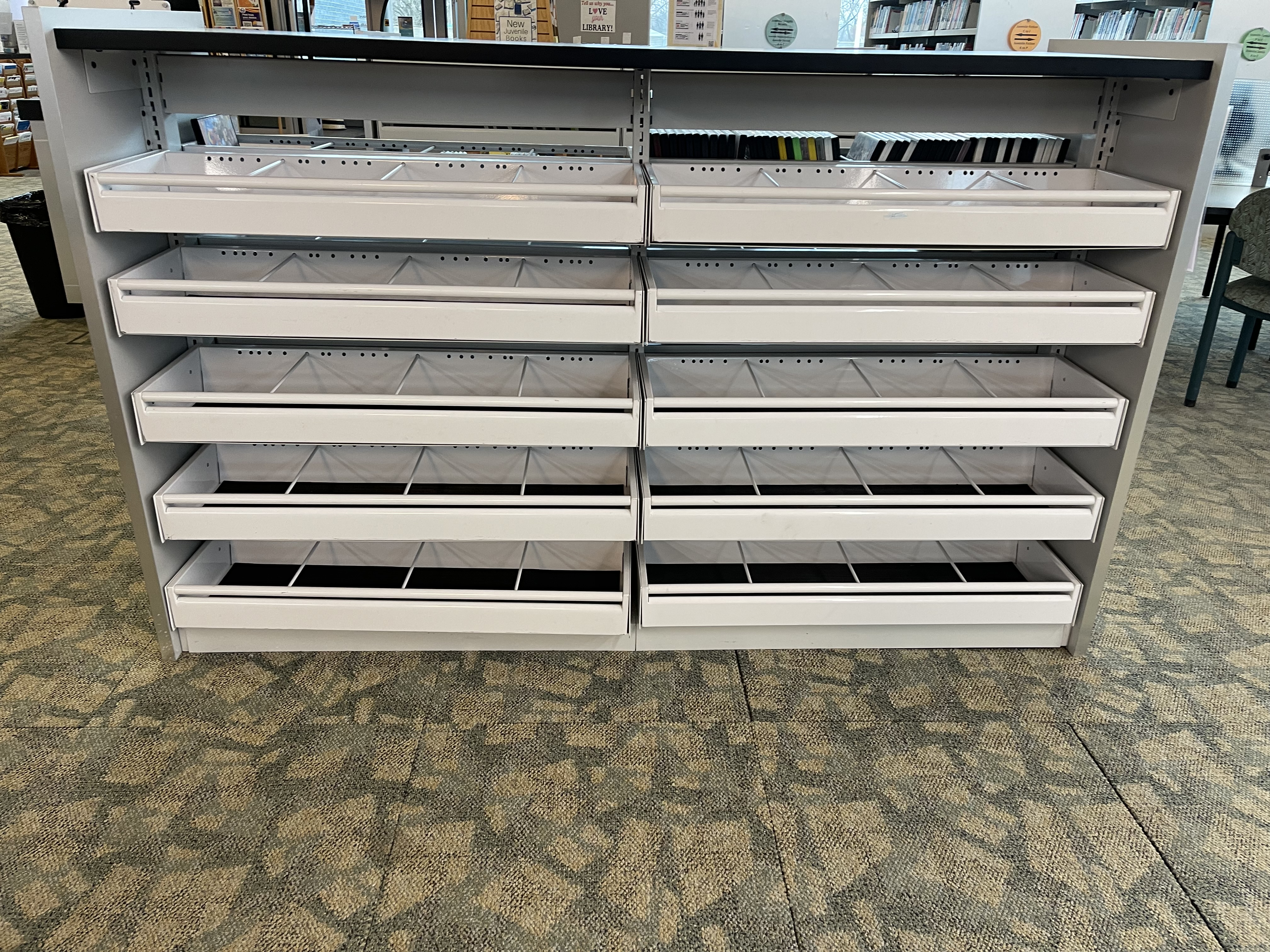 All drawers have been taken. Thank you for all the quick responses and saving these from the dumpster. Carolyn Smith Branch Librarian Dearborn Heights Libraries John F. Kennedy, Jr. Branch 313-791-6055 [cid:e9e77ba9-ad91-4efa-8186-0fa8ef67fd2f] ________________________________ From: Carolyn S. Smith <cssmith@dearbornheightsmi.gov> Sent: Thursday, February 6, 2025 11:12 AM To: all-tln <all-tln@lists.tln.org>; Jenny Kobiela-Mondor via Michlib-l <MICHLIB-L@MCLS.ORG> Subject: media drawers up for grabs We have 44 of these drawers up for grabs. Please note it is only the drawers. They are 36" long by 12" wide. We need them gone by February 17 when new carpet is being installed. Carolyn Smith Branch Librarian Dearborn Heights Libraries John F. Kennedy, Jr. Branch 313-791-6055 [cid:7888a53a-e92f-4896-8af2-fbbbf4d0676a] LEGAL CONFIDENTIAL: This E-mail (including attachments) is covered by the Electronic Communications Privacy Act, 18 U.S.C. ?? 2510-2521. The information and/or documents in this message are privileged and confidential, for use only by the intended recipient. If you are not the intended recipient, any disclosure, distribution, use or copying of the contents of this message is prohibited. If you have received this message in error, please notify us immediately and delete this message from your system.