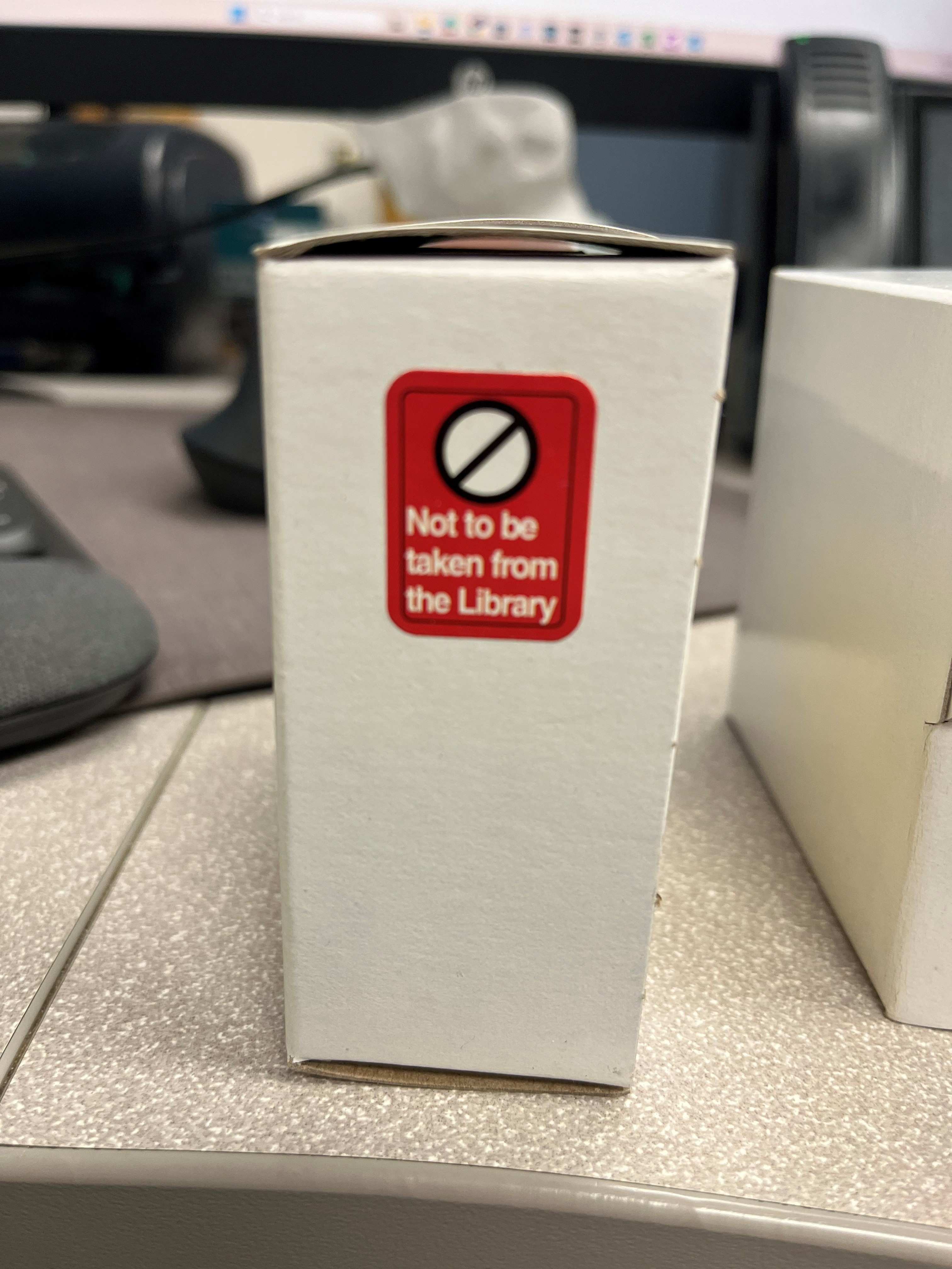 Stickers have found a new home 😊 From: Joyce Becker Sent: Wednesday, July 16, 2025 10:51 AM To: Michlib-l ListServ <michlib-l@mcls.org> Subject: 'NOT TO BE TAKEN FROM THE LIBRARY' stickers Hello, We have 6 boxes of sticker rolls “Not to be taken from the Library”, let me know if you’d like them and I will send through TLN delivery. Joyce [cid:image001.png@01DBF63F.8197E6B0] Joyce Becker Administrative Assistant Orion Township Public Library 825 Joslyn Road, Lake Orion, MI 48362 Phone: (248) 693-3000 ext. 431 | Direct: (248) 287-8020 orionlibrary.org