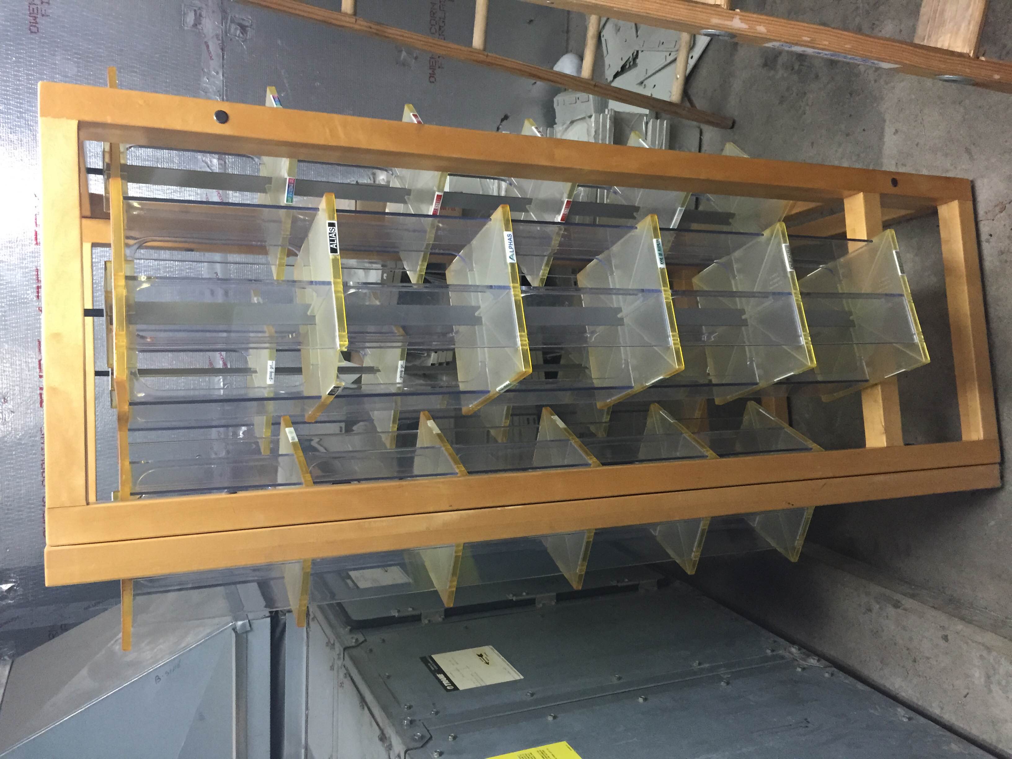 Northville District Library has two spinner racks to give away. They are wood and acrylic. You would need to pick them up and transport them. A picture is attached. ulie Herrin Director 248-349-3020