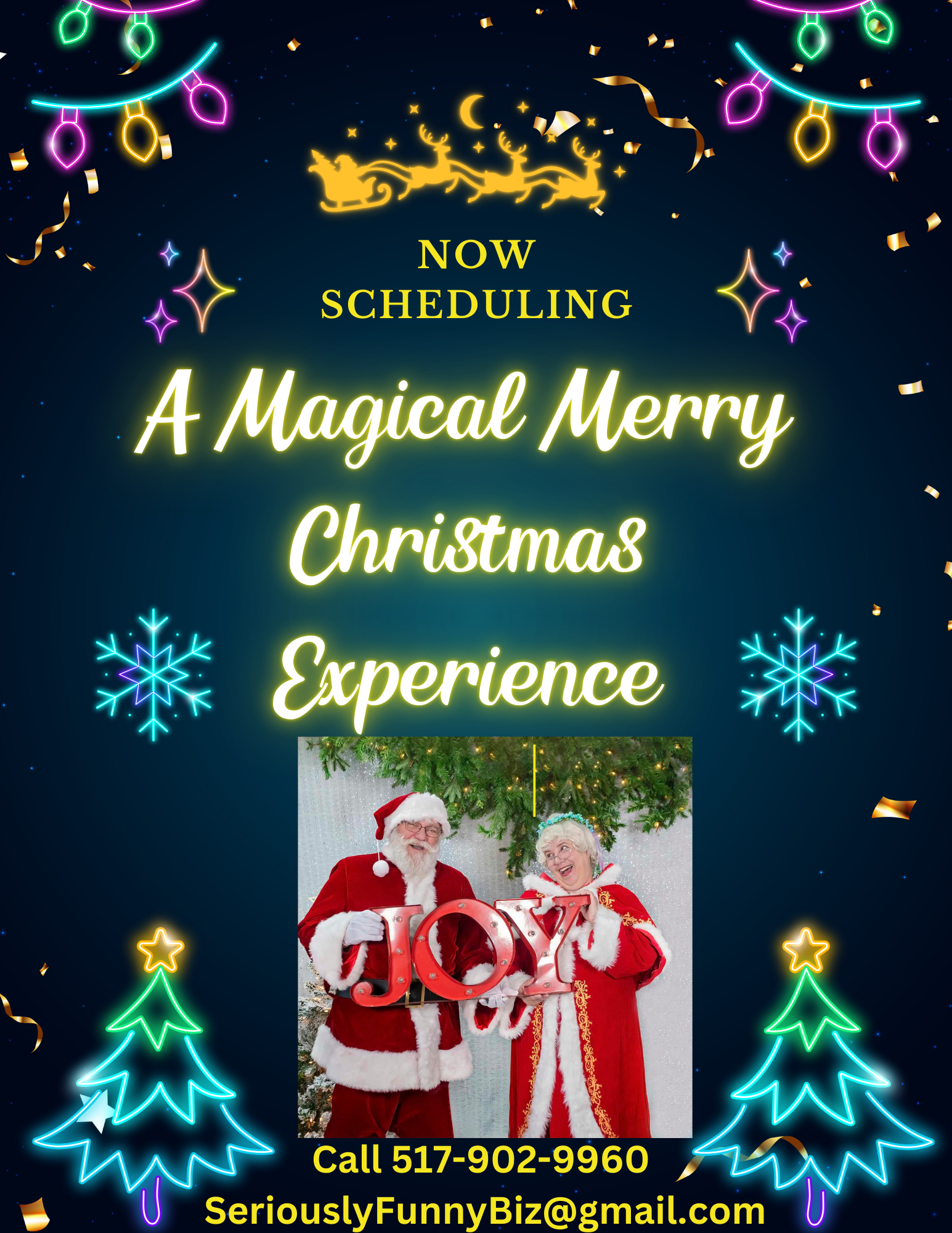 Hello Library Land, Last year, we hired Seriously Funny Biz to offer photos with Santa and Mrs. Claus during our Downtown Adrian holiday celebration. Tami was great to work with and quick with set up and tear down. They even brought coloring pages. The kids (and adults) had a great time. This year we have hired them again for their new Magical Merry Christmas Experience which includes stories, songs, and magic. Mrs. Claus can also offer facepainting! Seriously Funny Biz has been hired by other libraries and businesses in our area for their Murder Mystery adventures, Lily the Easter Bunny, and Missy the Clown characters and shows. If you have any questions about our experience with them please let me know. Seriously Funny Biz <https://www.seriouslyfunnybiz.com/> seriouslyfunnybiz@gmail.com 517-902-9960 [image: Magical Merry Christmas.png] [image: Claus.jpg] Thank you, *Chelsey Boss* Assistant Director Adrian District Library 143 E. Maumee St. Adrian, MI 49221 517.265.2265 (o) 517.759.3195 (f) *Adrian’s place to connect, explore, and learn.*