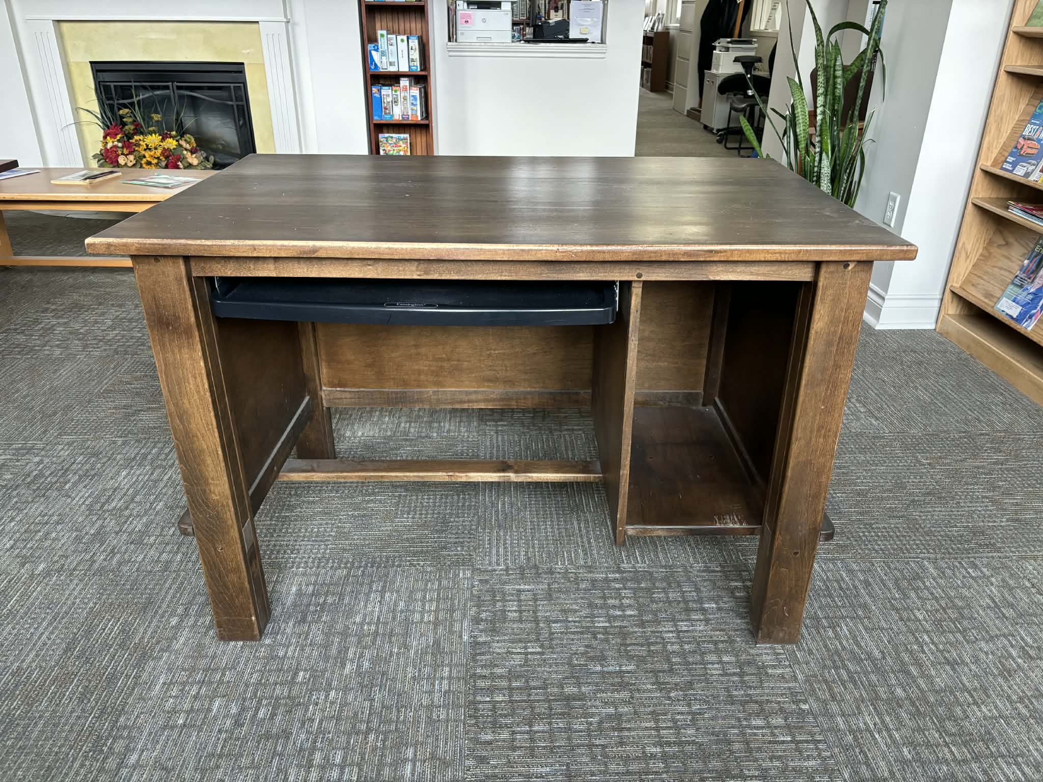 We have a wooden desk for sale at Newaygo Library!! Handmade Solid Wood w/ Computer Tray PRICE = $20 ITEM SOLD AS IS PICK UP ONLY Mary Franklin | Library Director a: 44 North State Rd | Newaygo, MI 49337 e: mailto:director@newaygolibrary.org | w: http://newaygolibrary.org/ p: 231 652 6723 https://www.facebook.com/Newaygo-Area-District-Library-174353817596/ https://www.twitter.com/newaygolibrary/ https://www.instagram.com/newaygolibrary/ http://pinterest.com/newaygolibrary/ https://tinyurl.com/newaygo-library-donations?fbclid=IwZXh0bgNhZW0CMTAAYnJpZ...