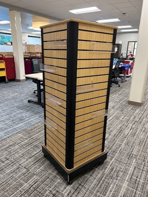 22" x 22" x 62" Four-sided Rolling Slatwall Merchandiser. Good Condition. $150 Pick-up at Portage District Library. Please reach out with questions or to schedule a time to pick up. Thanks! Quyên Edwards Assistant to the Director/Library Board Secretary Portage District Library 300 Library Lane Portage, MI 49002 (269) 585-8701 she/her/hers