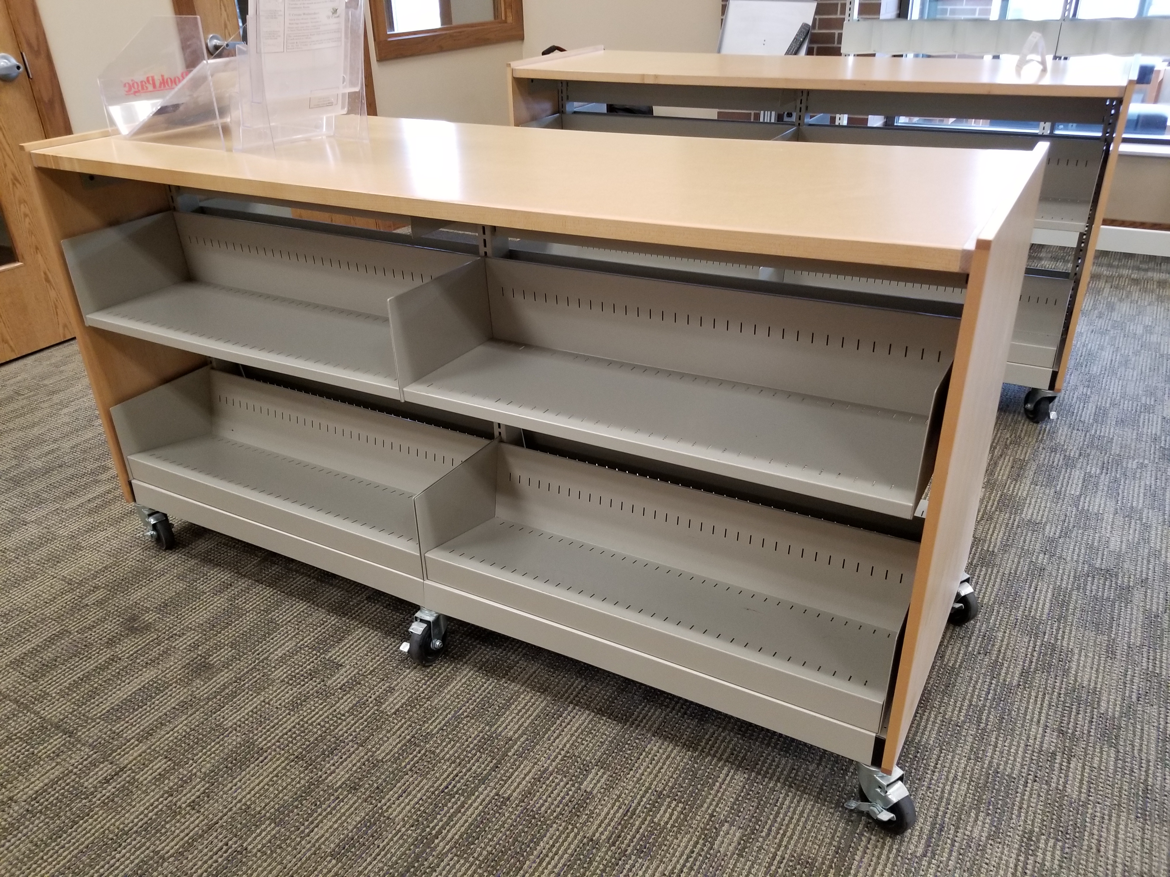 Tight on space? Now that our library expansion is almost complete, we no longer have need for the mobile shelving we purchased for our preschool area in 2010. Even fully loaded they could be pushed by a couple of average sized people to another area in order to open up space for children’s programs. We have 5 double sided units, with 4 shelves (36” long, 11 ½” deep with 6 ½” backs) on each side. The lower shelves are sloped. The end panels and trim are maple; the tops are a tannish/gold grid pattern laminate. If anyone is interested in making an offer, please call. Maureen Derenzy, Library Director Otsego County Library 700 S. Otsego Avenue Gaylord, MI 49735 (989) 732-5841 x15 mderenzy@otsego.org From: Jacqueline Skinner [mailto:reference@otsego.org] Sent: Monday, August 26, 2019 12:25 PM To: Maureen Derenzy Subject: Sent from my Verizon, Samsung Galaxy smartphone