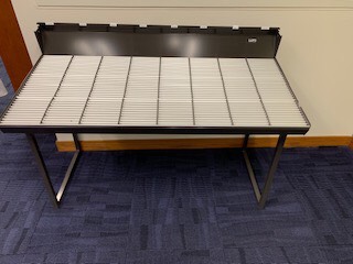 Hi, White Lake Twp. Library has a CD display rack for sale ($100 or best offer). Pictures attached below. The display has 264 slots divided over 8 columns (33 slots per column). Measurements: 49 inches long, 23.5 inches wide and 3 feet tall. Must pick up. Thank you! Rachel