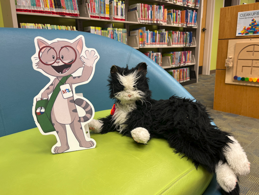 Hello! Mittens the Cat has learned a lot when visiting the Orion Township Public Library. First, Mittens was amazed by the youth librarians' I-Spy set up. He stared for hours! Next, we took him over to our library centennial timeline. He thought it was so cool our library used to be in a building called the Hemingway House. Then, we showed him the Makerspace. He REALLY wanted to use the Glowforge, but we told him that requires a training appointment first. We hope he comes back for it! Then we caught up with Orion Township Public Library's OWN Mittens the animatronic cat. No tussle over the shared name which was good (sorry for the clickbait). Lastly, we took Mittens to the Staff Only area where he even got to take a ride on our new Automated Material Handler (AMH) machine alongside all the returned books from patrons thru our Drive Thru window. We tired him out for a little while, but we hear he's on his way to another library already. Go Mittens Go! Warmly, [cid:14aed757-4aa0-452b-82ca-e60ce368d0d3] Paige Greer Marketing Librarian Orion Township Public Library 825 Joslyn Road, Lake Orion, MI 48362 Phone: (248) 693-3000 ext 415 orionlibrary.org