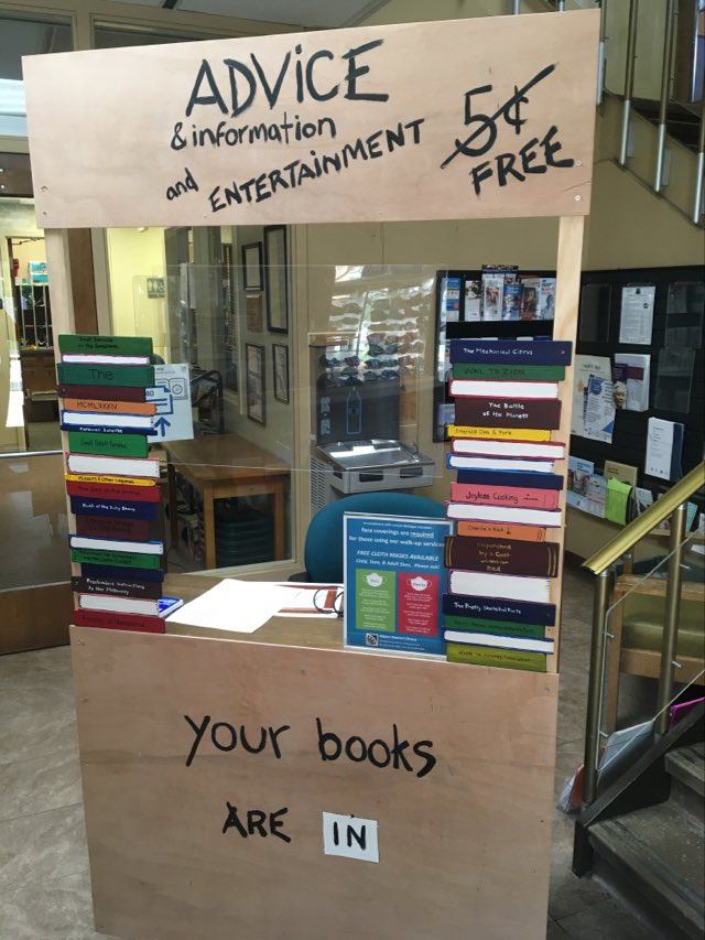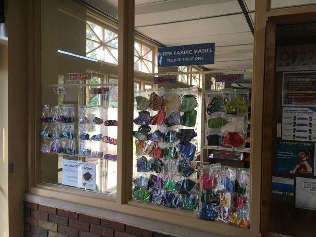 Hello, Emily! We started using a welcome station but are using it for display in the front lobby to block the stairs going to our closed second and third floors right now. We discontinued using it due to very low on-site visits. As we see more visits, we'll return to using it. One of our staff created a Charlie Brown-inspired information booth that we attached to an old bookcart. We also have a lobby display on masks which includes that we are requiring face covers by library policy. We also have a display of free fabric masks and earsavers made by staff or the community that we are distributing. I've attached photos of these below. Cynthia Stanczak, MLS Library Director Albion District Library 501 S. Superior St. Albion, MI 49224 (517) 629-3993 Albion District Library: Transforming Minds, Changing Lives. Proudly serving our community since 1919. Online at www.albionlibrary.org, or find us on Facebook! *My working day may not be your working day. Please do not feel obligated to reply to this email outside of your normal working hours.* On Fri, Jul 10, 2020 at 9:41 AM Emily Dumas via Michlib-l < michlib-l@mcls.org> wrote: