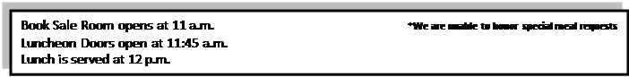 ** Presents the 87^th Author Luncheon *Monday, October 19, 2015* Burton Manor 27777 Schoolcraft Road, Livonia, MI 48150 (Between Middlebelt & Inkster off I-96) *Ticket Sales Begin Tuesday, September 8^th Tickets $40^* Tickets are available *online* at www.bookandauthor.info <http://www.bookandauthor.info>, by *phone* at 586-685-5750 x102, or by mail using the form below. *Featured Authors:* *David Maraniss – Once In a Great City: A Detroit Story* /David Maraniss is a Pulitzer Prize-winning reporter who grew up in the Detroit area and, in some ways, never left. / /In his new book, “Once a Great City: A Detroit Story,” he draws a vivid portrait of the Motor City in the 1960’s / /when it was in the midst of a Golden Age, but beset by crime and racism was also “dying and thriving at the same time.”/ *Lily Tuck – The Double Life of Liliane* Lily Tuck is the author of five novels, including “Siam,” a PEN/Faulkner Award finalist, and “The News from Paraguay,” winner of the 2004 National Book Award.Her work has been translated in over a dozen languages.Her new novel, “The Double Life of Liliane,” is an intimate, rollicking portrait of a writer’s coming of age. *John Katzenbach – The Dead Student* John Katzenbach, a master of the modern psychological thriller, is an international bestselling author whose books include “The Traveler” and “Red 1-2-3.”His tense, penetrating 14^th novel, “The Dead Student,” follows a young man set on avenging the uncle who saved his life, no matter the consequences.** *Jason Gay – Little Victories: Perfect Rules for Imperfect Living* Jason Gay is a Wall Street Journal reporter and columnist who writes about everything from sports (which he loves but doesn’t take too seriously) to his “Rules” columns that provide untraditional (but useful) advice for everyday life.His new book is “Little Victories: Perfect Rules for Imperfect Living.”** *Bonnie Jo Campbell – Mothers Tell Your Daughters* Bonnie Jo Campbell is an award-winning novelist and short-story writer from Michigan.Her critically-acclaimed collection “American Salvage,” stories of people struggling to make sense of the 21^st century, was a 2009 National Book Award fiction finalist. Her new collection of stories is titled “Mothers Tell Your Daughters.”** Text Box: Book Sale Room opens at 11 a.m. *We are unable to honor special meal requests Luncheon Doors open at 11:45 a.m. Lunch is served at 12 p.m. For additional information, please visit our website at www.bookandauthor.info <http://www.bookandauthor.info> or call 586-685-5750 x102. -- Tammy Turgeon Director Sterling Heights Public Library 40255 Dodge Park Sterling Heights, MI 48313 586-446-2640 Director Suburban Library Cooperative 44750 Delco Blvd Sterling Heights, MI 48313 586-685-5750