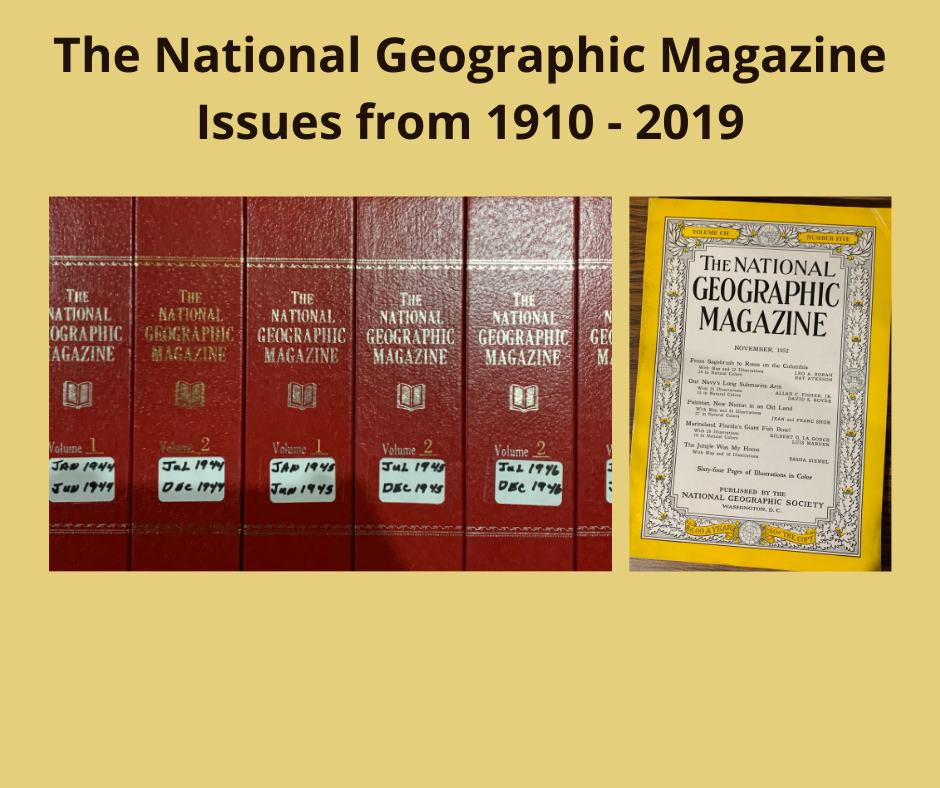 Hello Everyone, Does anyone need or want old National Geographic magazines? We have decided that we are eliminating our collection. Please let me know. Pick up will have to be arranged if you want a lot of them. [image: NatGeographic Giveaway.png] Tina -- Tina Marie Russette (she/her) Adult/Teen Services Manager Holly Township Library 1116 N. Saginaw St. Holly, MI 48442 248-634-1754