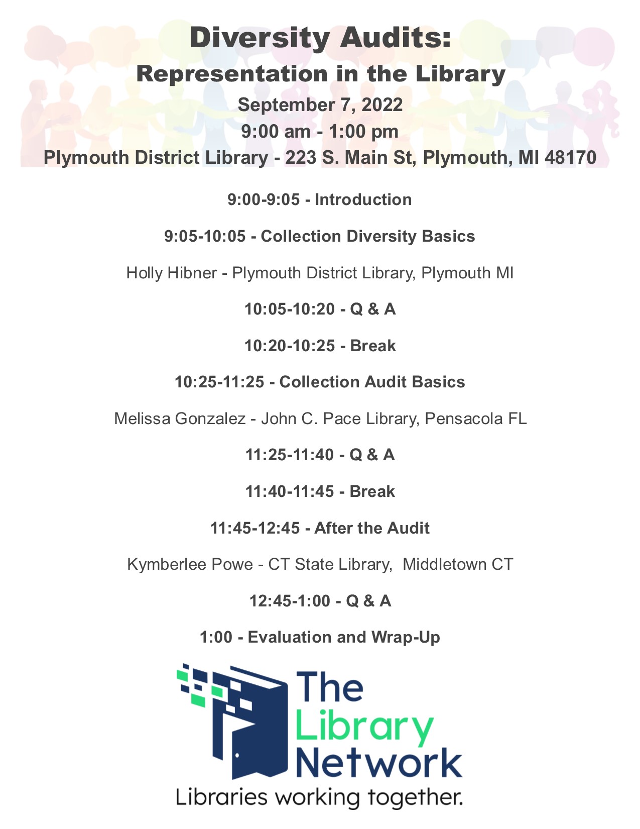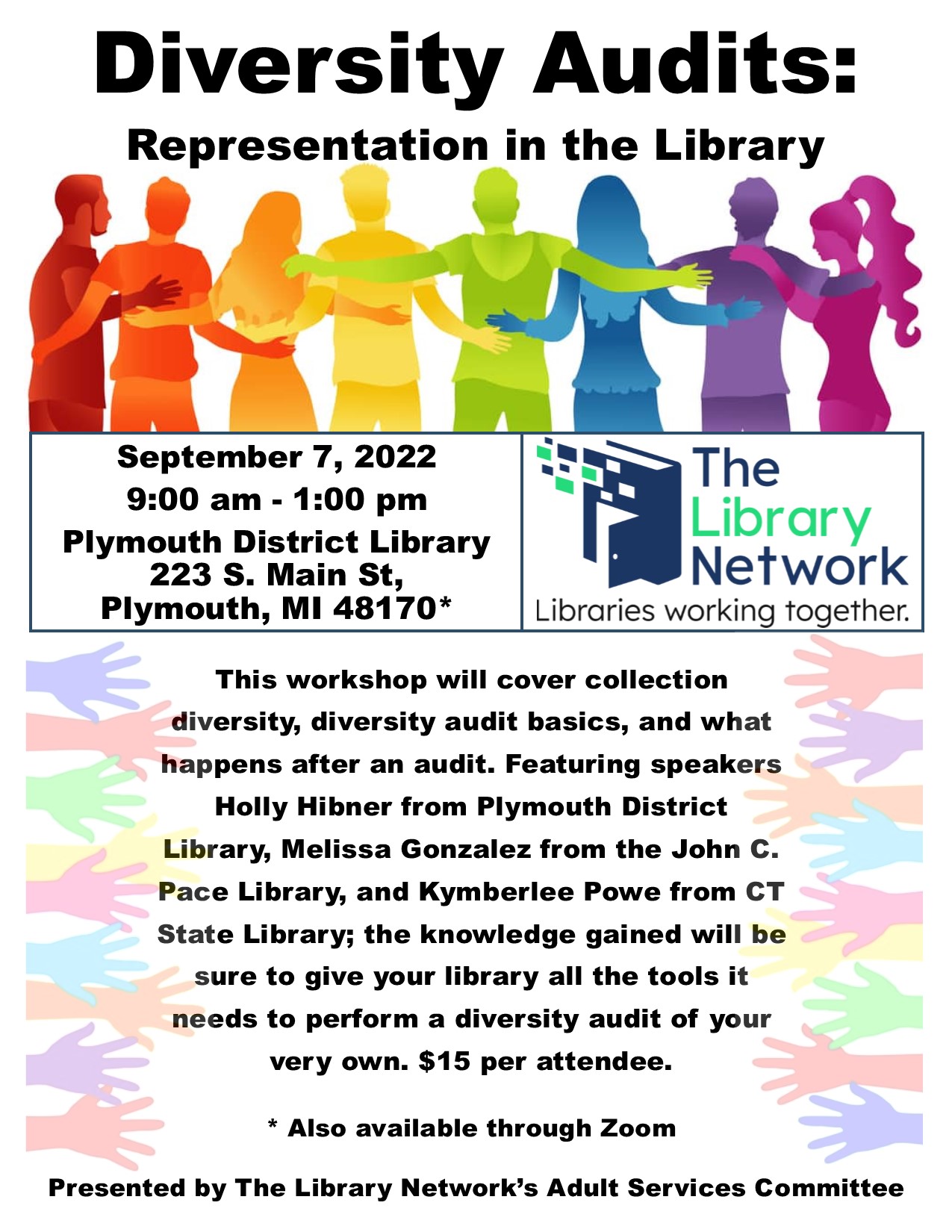 Please join us online via Zoom or in person 9/7 @9AM at Plymouth District Library for a workshop on Diversity Audits