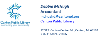 Even though Canton Public Library has gone fine free, we still have a need to collect cash and credit card payments. Our old register has exceeded its useful life and is in need of replacement. I am interested in hearing what other libraries have done in this situation. Did you replace your register with a newer model or changeover to a new (POS) system? Please reply directly to me at mchughd@cantonpl.org<mailto:mchughd@cantonpl.org> letting me know what you replaced your cash register with, how long the process took, and the pros and cons of your current system. Thank you, [cid:image001.png@01D82CA5.E525B7F0]