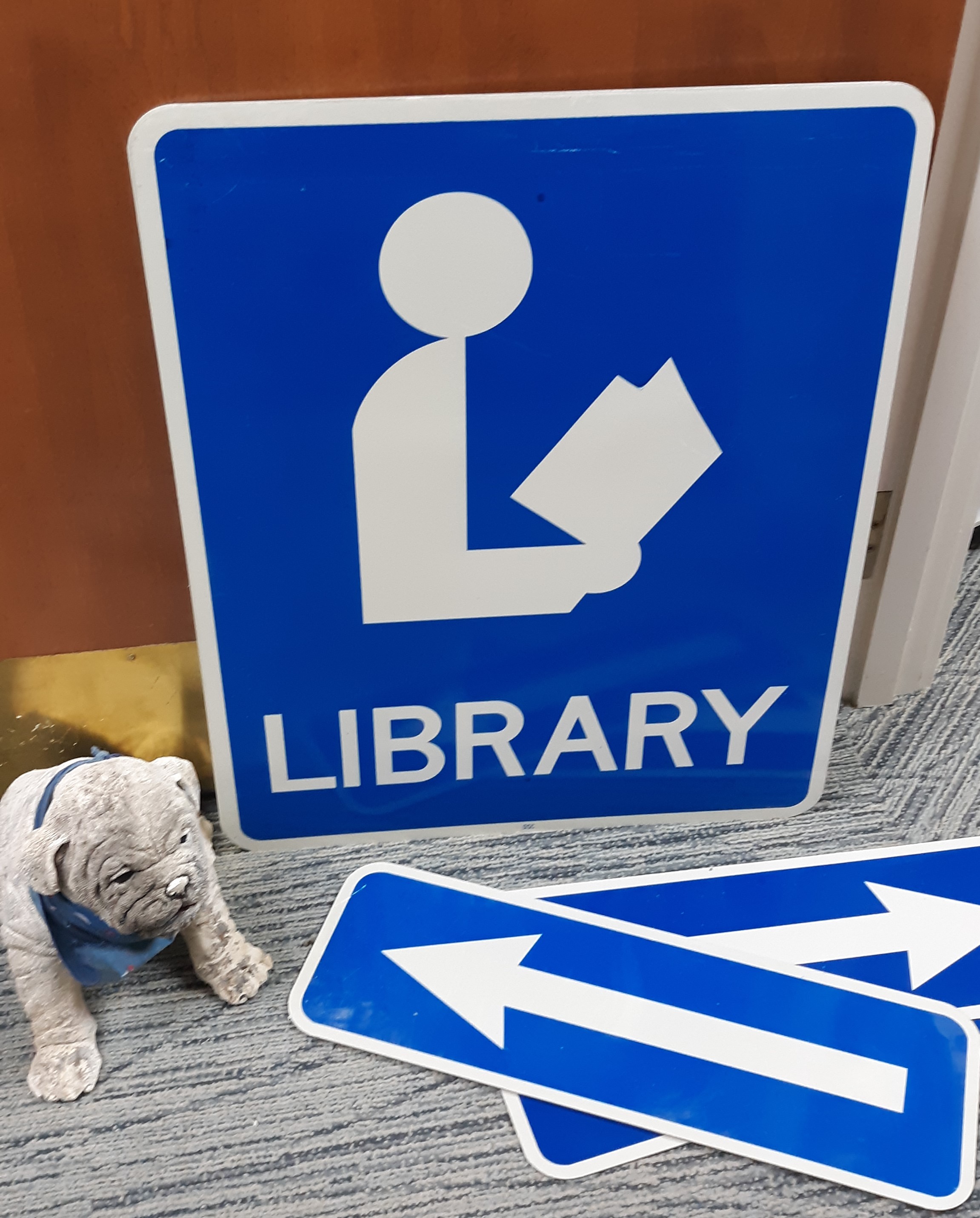 We have three pairs of Reflective outdoor Library signs and arrows for sale, $35 per pair. Pick up only! Signs are 30"H X 24"H Arrows are 8"H X24" W. These are also sold at Demco for $70 a pair. Please see the photo in attachments. There are punch out holes to attach to pole, no hardware. Mary Barker, Director Pentwater Township Library 402 E. Park Street Pentwater, MI 49449-7710 231 869-8581