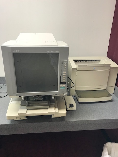 Free to a good home: Before we discard it, perhaps somebody could use a microfilm reader and printer in good working order. It’s a Minolta MicroSP 2000 and matching Minolta printer. It’s been in regular use until now. See attached photo. The location is Genesee District Library Headquarters at 4195 W. Pasadena Ave., Flint. Just off I-75. We would like it gone soon, so if you would like it, please let me know. Thanks. Darwin McGuire Technical Services Manager Genesee District Library 4195 W. Pasadena Ave. Flint, MI 48504 Tel. 810-230-3329 FAX 810-732-1161