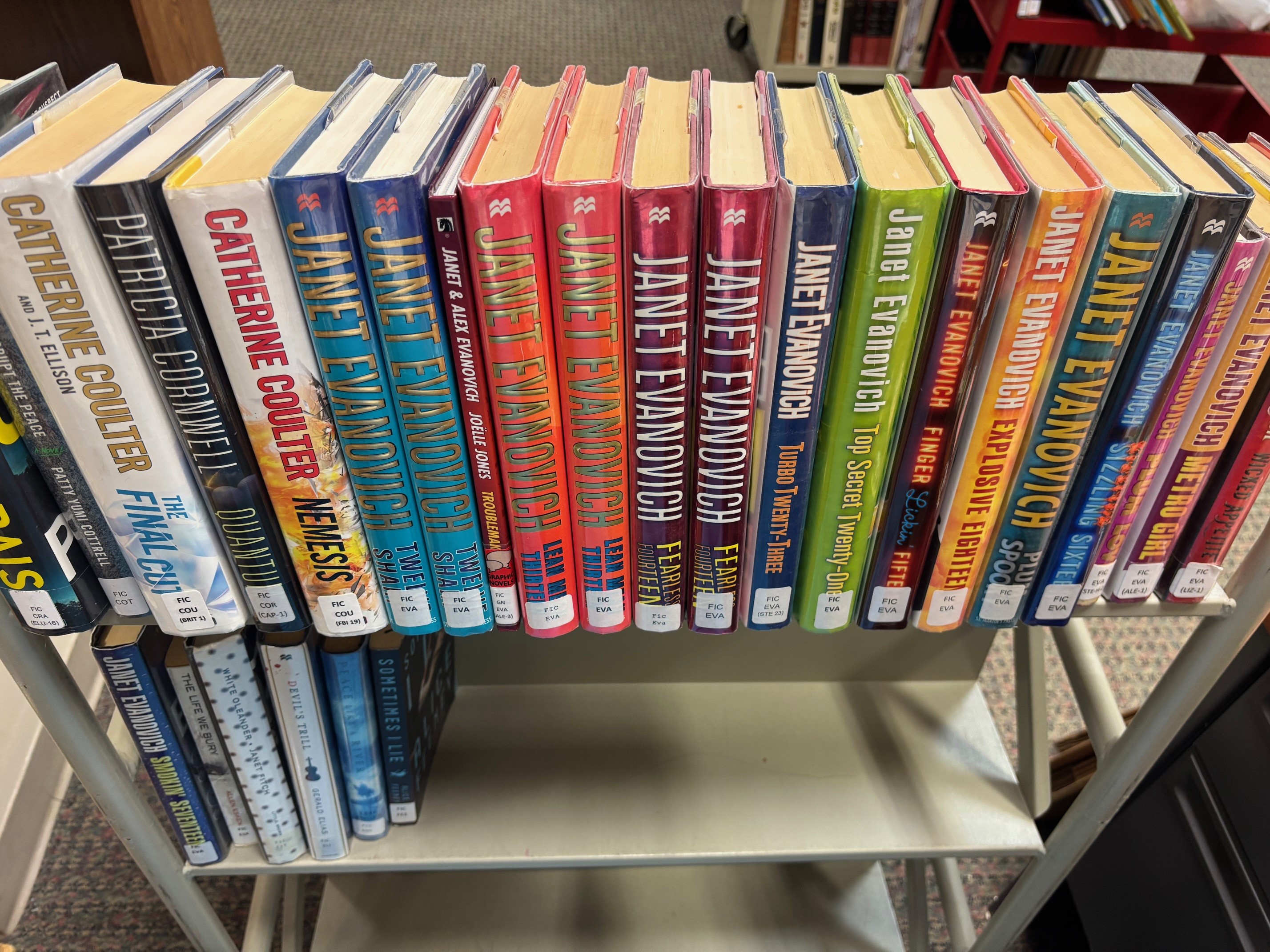 We have been getting rid of duplicates/triplicates. Can anyone use any of these? All but 2 items on the cart are hardcover and in great condition. Mostly Janet Evanovich but some other titles as well. Please let me know if you want any and what your rides code is!