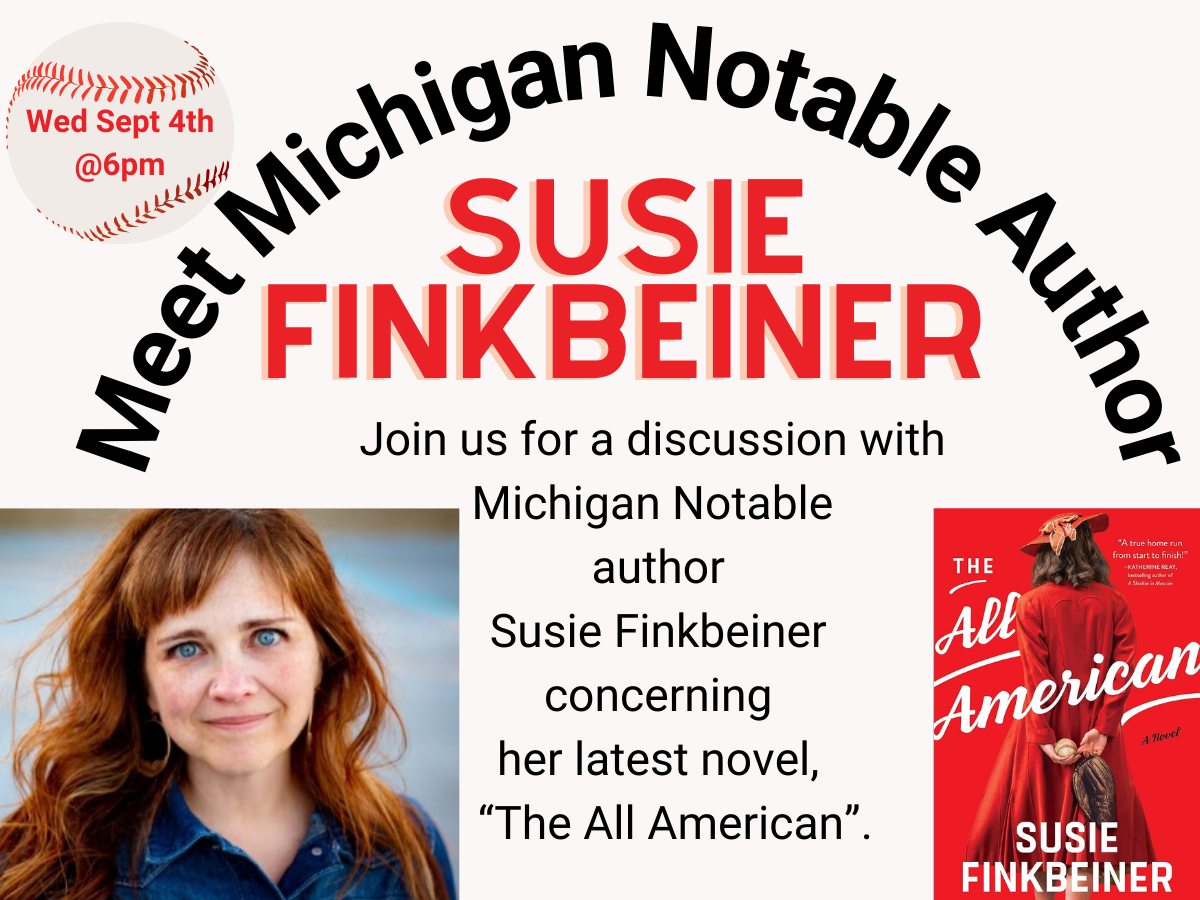 Hi All! Just wanted to send an open invite to our library event. We will be hosting Michigan Notable Author Susie Finkbeiner on September 4th at 6pm. She will be discussing her book, The All American. [cid:4f47f1a4-d254-4375-a922-5d590179bd3b] Pam Ballett Director Schoolcraft Community Library 330 N Centre Schoolcraft MI 49087 269 679-5959 [https://ci3.googleusercontent.com/mail-sig/AIorK4zo6Pdd7idswbRjh2zFjbRLbu3GI...] “Books are a uniquely portable magic.” ― Stephen King www.schoolcraftlibrary.org<http://www.schoolcraftlibrary.org/>