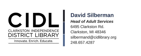We recently hosted this author at CIDL and had a fantastic turnout. The audience was engaged, respectful, and asked some great questions. I cannot recommend her enough to have at your library, school, or other community organization. ------------------------------ *From:* Michlib-l <michlib-l-bounces@mcls.org> on behalf of Julie Farkas via Michlib-l <michlib-l@mcls.org> *Sent:* Saturday, October 5, 2024 5:37 PM *To:* michlib-l@mcls.org <michlib-l@mcls.org> *Subject:* [Michlib-l] Author Event Sponsored by Novi Public Library