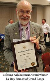 cid:image001.jpg@01D049CB.CCD4EF00 Historical Society of Michigan 5815 Executive Dr. Lansing, MI 48911 Contact: Nancy Feldbush (517) 324-1828 <mailto:hsm@hsmichigan.org> hsm@hsmichigan.org For Immediate Release 2017 STATE HISTORY AWARDS PRESENTED IN HOLLAND, MICHIGAN HOLLAND, Mich.-The Historical Society of Michigan awarded 15 top honors during its annual State History Conference, which was held in Holland, Michigan, Sept. 22-24, 2017. The Society presents the State History Awards every year to individuals and organizations that have made outstanding contributions to the appreciation, collection, preservation and/or promotion of state and local history. The awards are the highest recognition presented by the Historical Society of Michigan, the state's official historical society and oldest cultural organization. The winners are: (Detailed descriptions of each recipient are listed at the end of this news release.) . Lifetime Achievement Award-Le Roy Barnett of Grand Ledge . Distinguished Volunteer Service-Toni Rumsey of Ludington . Books: University & Commercial Press- o "Designing Detroit: Wirt Rowland and the Rise of Modern American Architecture" by Michael G. Smith (Wayne State University Press) o "Detroit 1967: Origins, Impacts, Legacies" by Joel Stone (Wayne State University Press) o "James Jesse Strang: The Rise and Fall of Michigan's Mormon King" by the late Don Faber (University of Michigan Press) o "Mid-Michigan Modern: From Frank Lloyd Wright to Googie" by Susan Bandes (Michigan State University Press) . Books: Private Printing- o "Footprints: Stories of Native Americans in West Central Michigan" by Wallace K. Ewing (Wallace K. Ewing) o "We Bought a WWII Bomber: The Untold Story of a Michigan High School, a B-17 Bomber & the Blue Ridge Parkway" by Sandra Warren (Arlie Enterprises) . Businesses-West Michigan Tourist Association in Grand Rapids . Education: Educational Programs-Wild Swan Theater in Ann Arbor for the play "Rosie the Riveter" and its associated educational materials . Institutions-The Local History and Genealogy Collection at the Hoyt Library in Saginaw . Local Societies-Algonac-Clay Township Historical Society in Algonac . Restoration/Preservation-Walter P. Reuther Library, Wayne State University in Detroit for its Michigan Labor History Mural Restoration . Special Programs/Events-University of Michigan in Ann Arbor for "True Blue! A Tribute to Michigan" . Best Article in Michigan History Magazine-"Vincent Chin: A Catalyst for the Asian-American Civil Rights Movement" by Frances Kai-Hwa Wang of Ann Arbor The State History Conference explores significant people, places and events in Michigan's past through a diverse offering of keynote speakers, breakout sessions, workshops and tours. Each year, the conference moves to a different location to feature the local history of that area and to address notable statewide historical matters. The Historical Society of Michigan also hosts the Upper Peninsula History Conference, which focuses on the history of the Upper Peninsula, and Michigan in Perspective: The Local History Conference, which concentrates on Southeast Michigan and statewide history. The 2017 State History Conference was sponsored by Meijer Inc., the Edgar and Elsa Prince Foundation, Hope College, the Holland Museum, Van Raalte Press, and the Joint Archives of Holland. The Historical Society of Michigan is the state's oldest cultural organization, founded in 1828 by territorial governor Lewis Cass and explorer Henry Schoolcraft. A nongovernmental nonprofit, the Society focuses on publications, conferences, education, awards and recognition programming, and support for local history organizations to preserve and promote Michigan's rich history. ----------------------------- The 2017 Lifetime Achievement Award was presented to Dr. Le Roy Barnett of Grand Ledge. Barnett earned a bachelor's degree in geography and forestry and a master's in geography and geology from Michigan State University. He received his Master of Library Science degree from Western Michigan University and his Ph.D. in historical geography from Michigan State University. Barnett became a familiar figure to countless amateur and professional historians through his 23 years as a reference archivist for the Michigan History Bureau. Barnett has researched hundreds of papers and articles for various publications and has written numerous books, including "Mining in Michigan," "Shipping Literature of the Great Lakes," and "Michigan's Early Military Forces." The 2017 State History Award for Distinguished Volunteer Service was presented to Toni Rumsey of Ludington for her years of service to the Newaygo County Museum and Heritage Center. Rumsey manages the organization's reference department and archives, where she has compiled and digitized a vast amount of information about the area. She has served on the museum's board of directors, written books about local history, created exhibits, led tours and trained other volunteers. Her tireless work on behalf of the museum and local history exemplifies the spirit of volunteerism. Detroit architectural historian Michael G. Smith received a State History Award in the category of Books: University & Commercial Press for "Designing Detroit: Wirt Rowland and the Rise of Modern American Architecture," published by Wayne State University Press. The book spotlights the work of little-known but innovative architect Wirt Rowland, the chief designer working under Albert Kahn, and analyzes Rowland's accomplishments in building design and his influence as a leader of Detroit's architectural community throughout the first half of the 20th century. A State History Award in the category of Books: University & Commercial Press was presented to Joel Stone for "Detroit 1967: Origins, Impacts, Legacies," published by Wayne State University Press. Stone, the senior curator of the Detroit Historical Society, edited 25 essays from journalists and historians to craft a book that 
